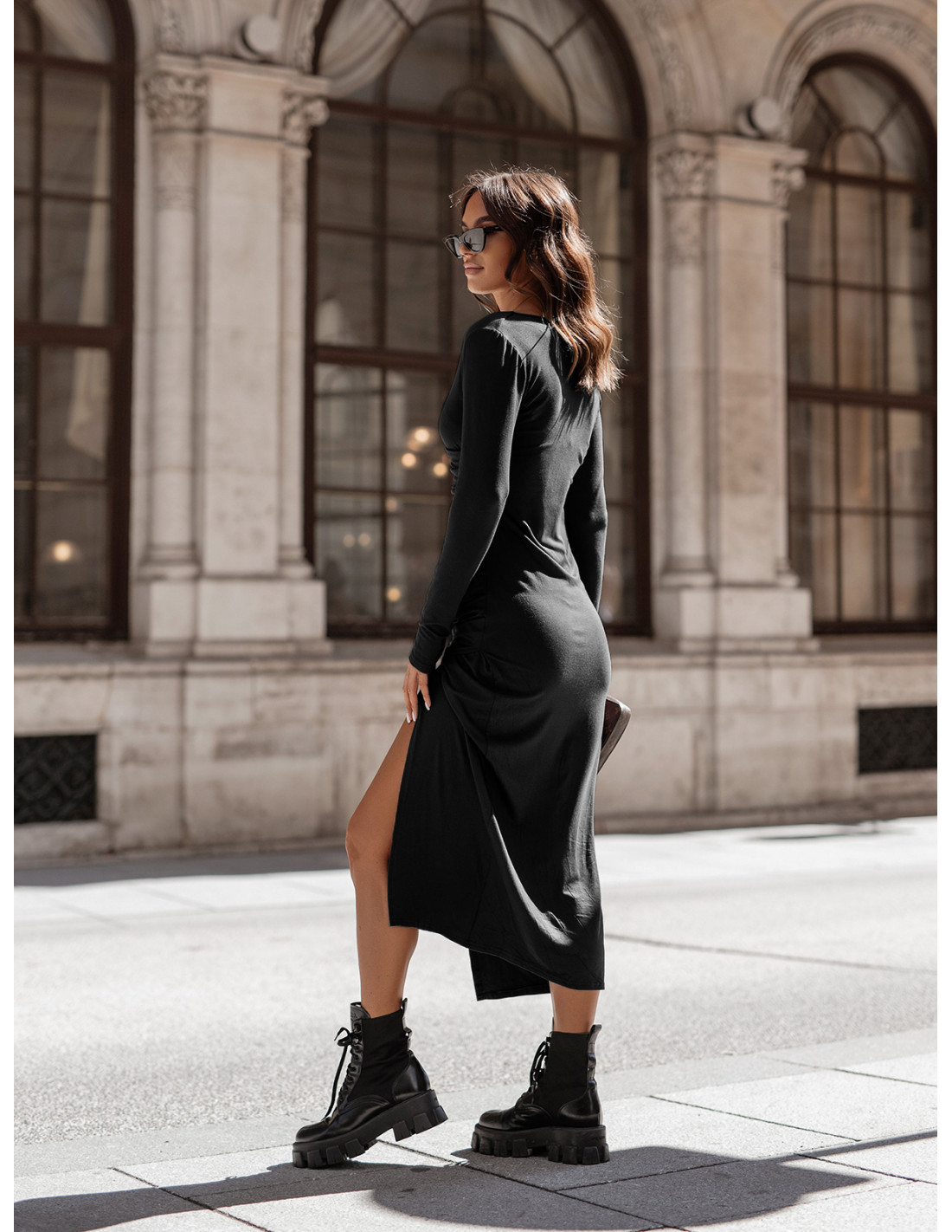 Kobieca sukienka midi z wiskozy HANAI - czarna