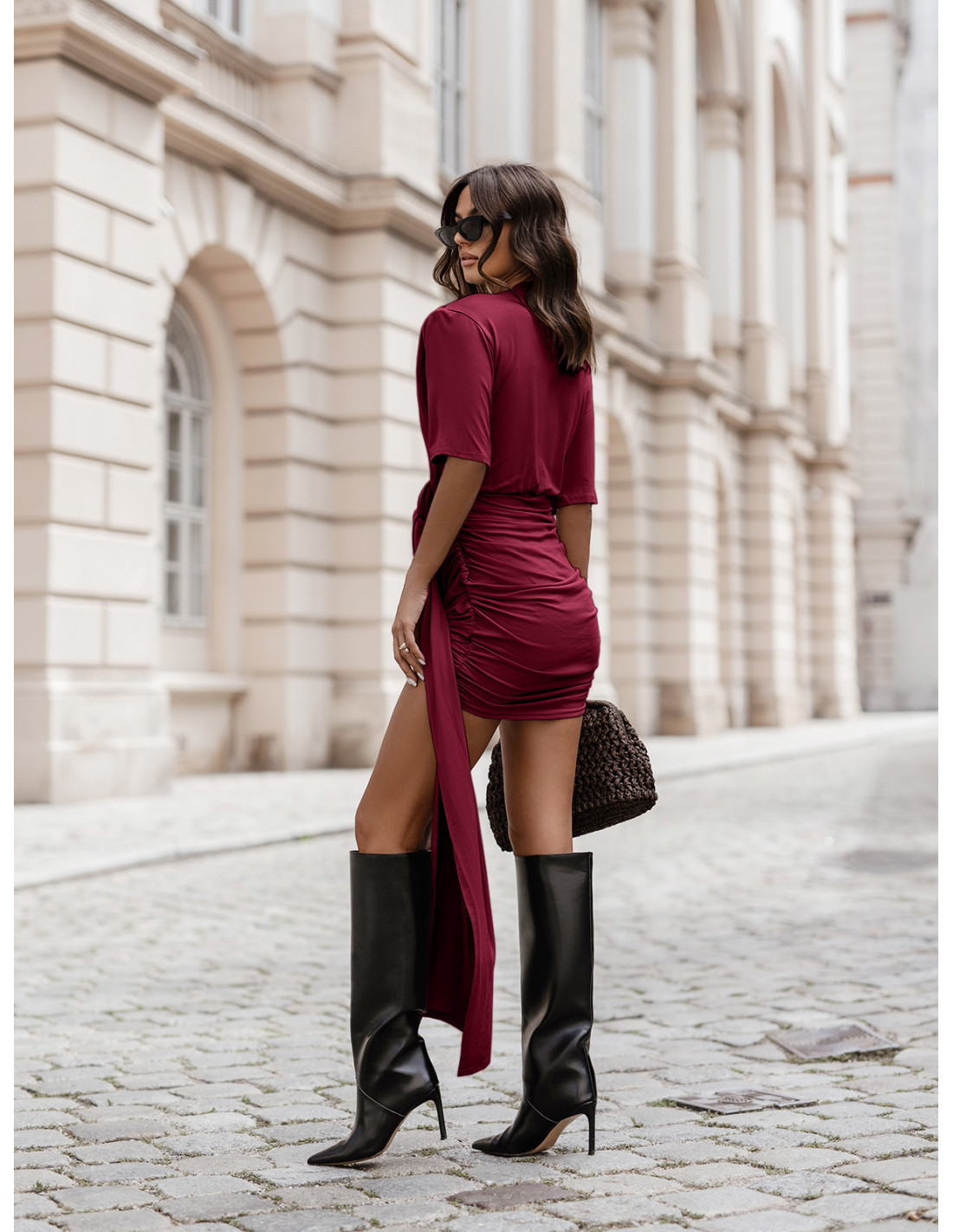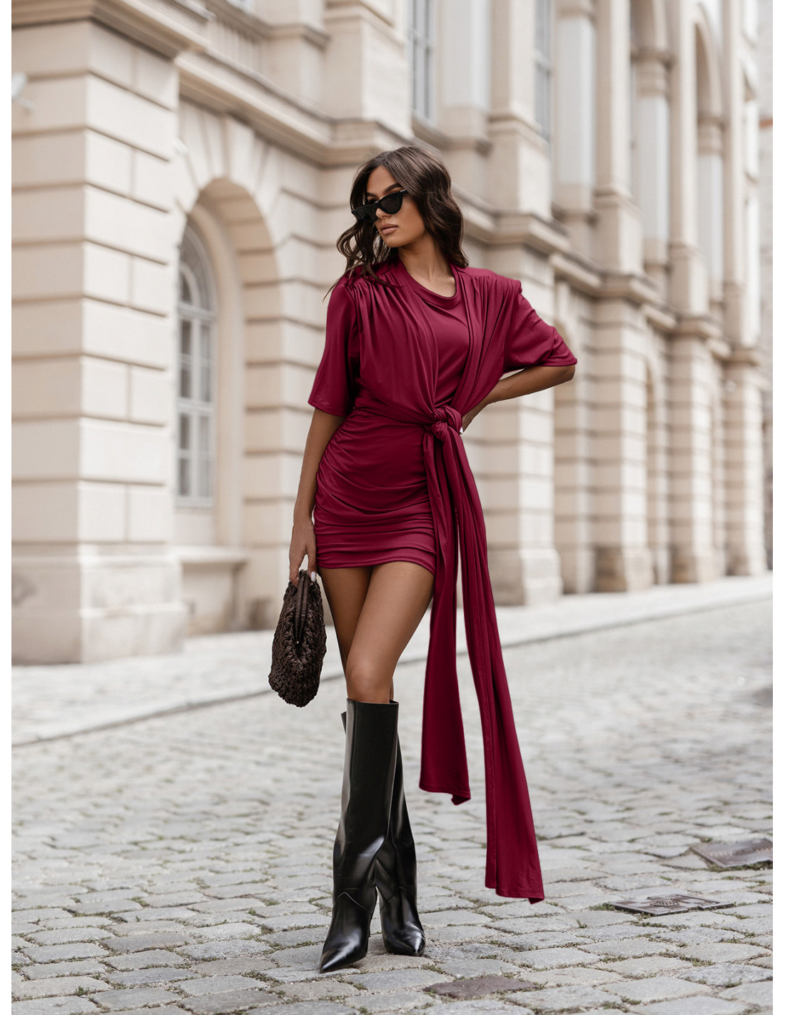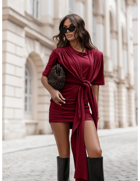Wiskozowa sukienka mini z wiązaniem NAOYA - bordowa