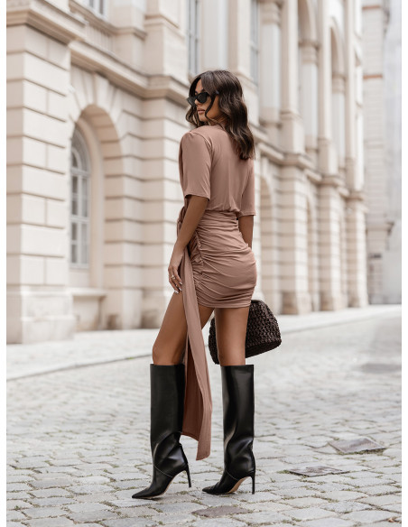 Wiskozowa sukienka mini z wiązaniem NAOYA - cappuccino