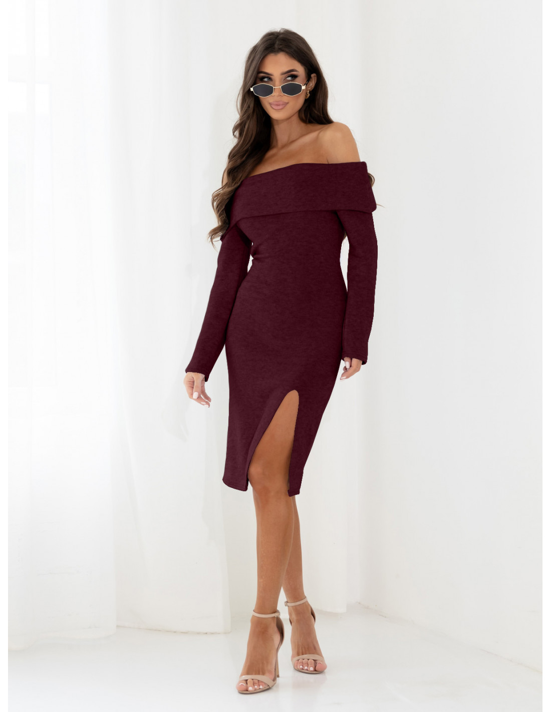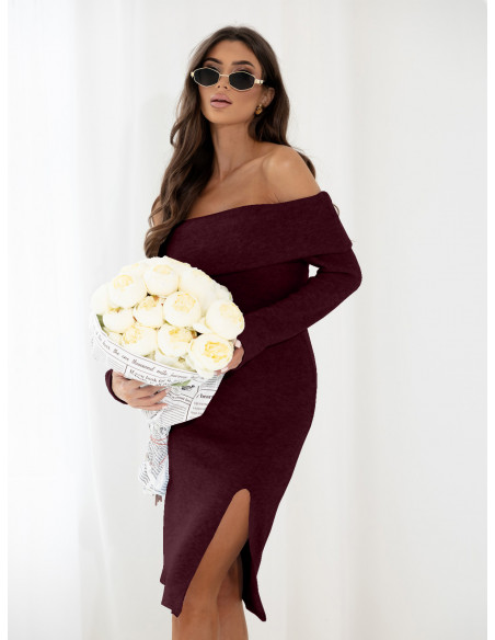 Dzianinowa sukienka hiszpanka MARCELINE - bordowa
