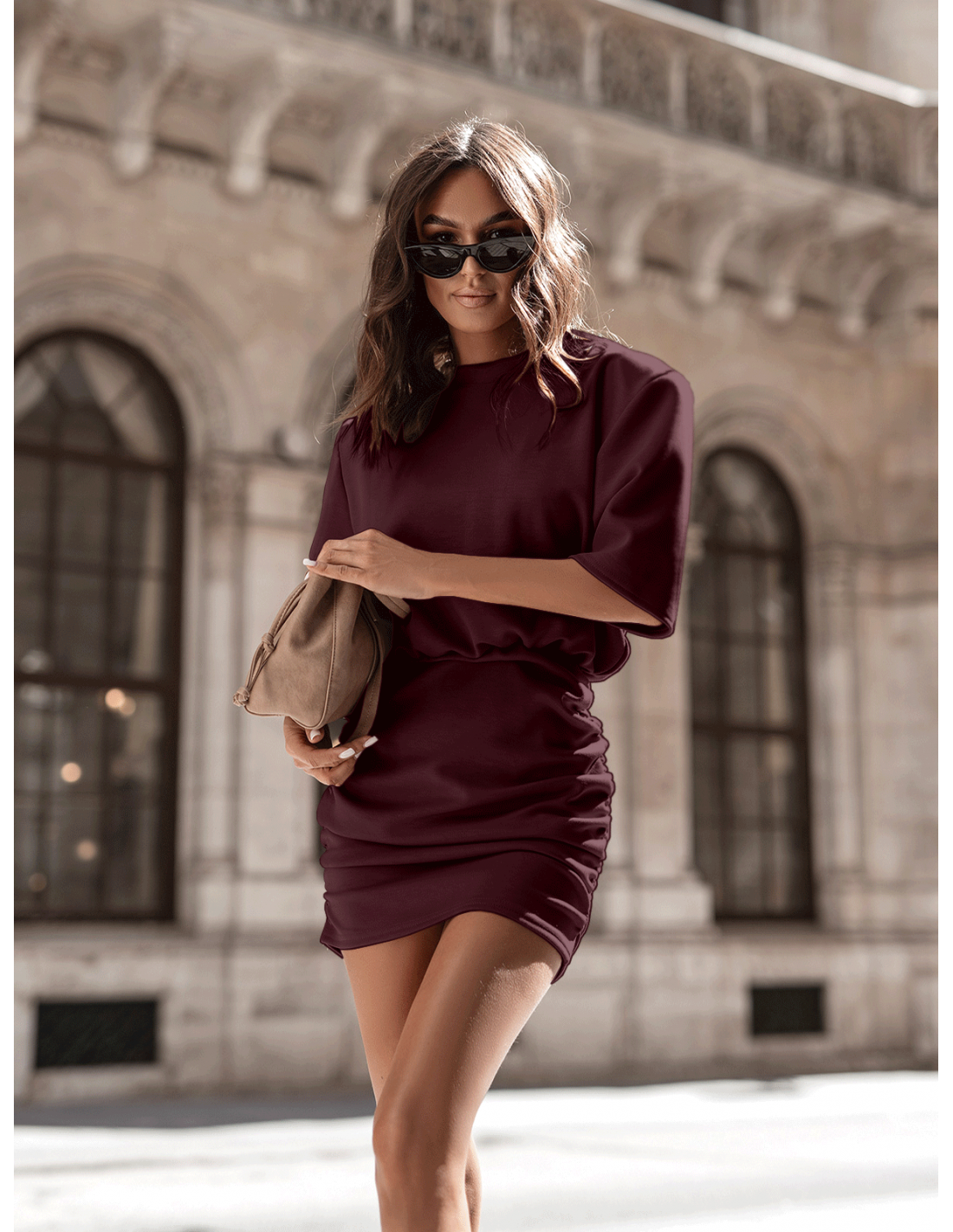 Masełkowa sukienka mini z marszczeniem ZAMIA - bordowa