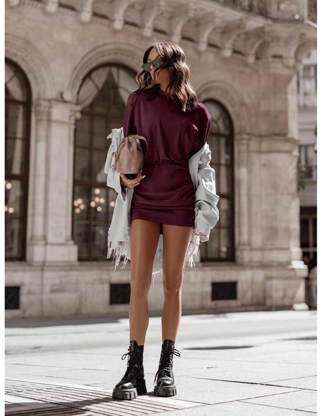 Bordowy kolor sprawia, że sukienka łatwo wpisuje się w każdą kapsułową garderobę.