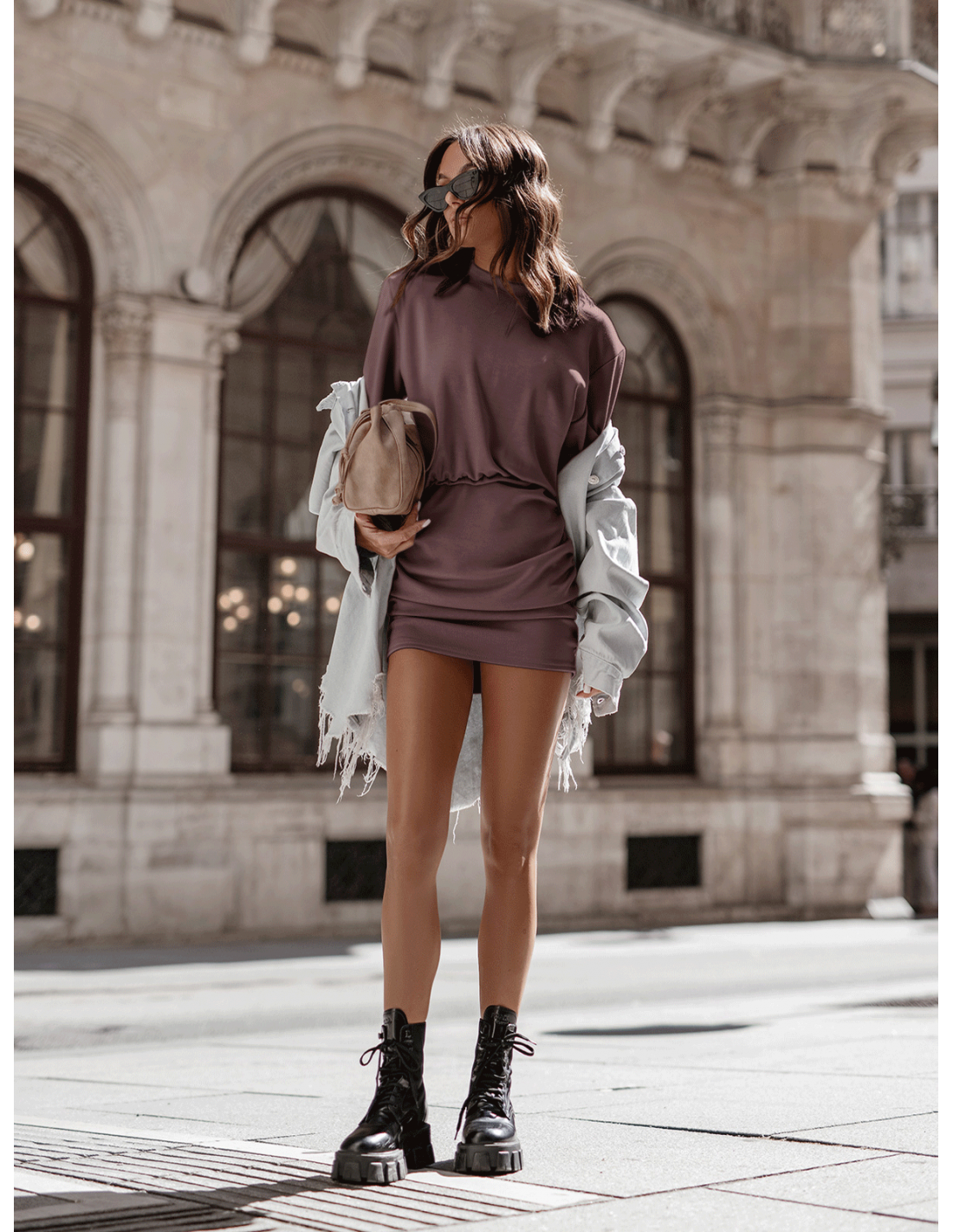 Sukienka mini o oversizowej górze i marszczonym dole to prawdziwa perełka wśród miejskich stylizacji!