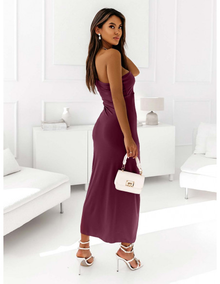 Całość dodatkowo zdobi rozcięcie na nodze, które nadaje sukience zmysłowości.