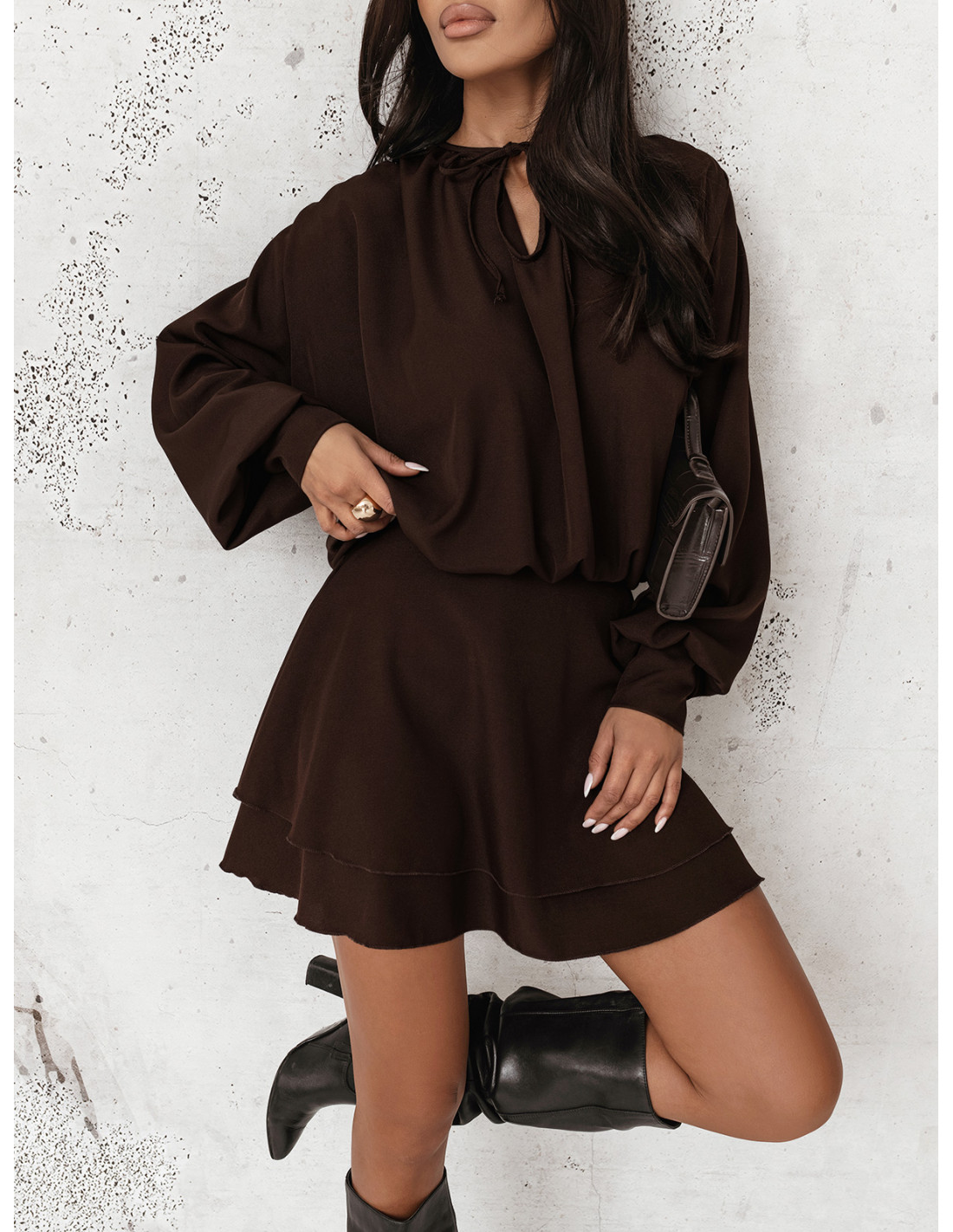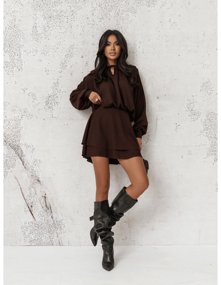Rozkloszowana sukienka mini CLEO - czekoladowa
