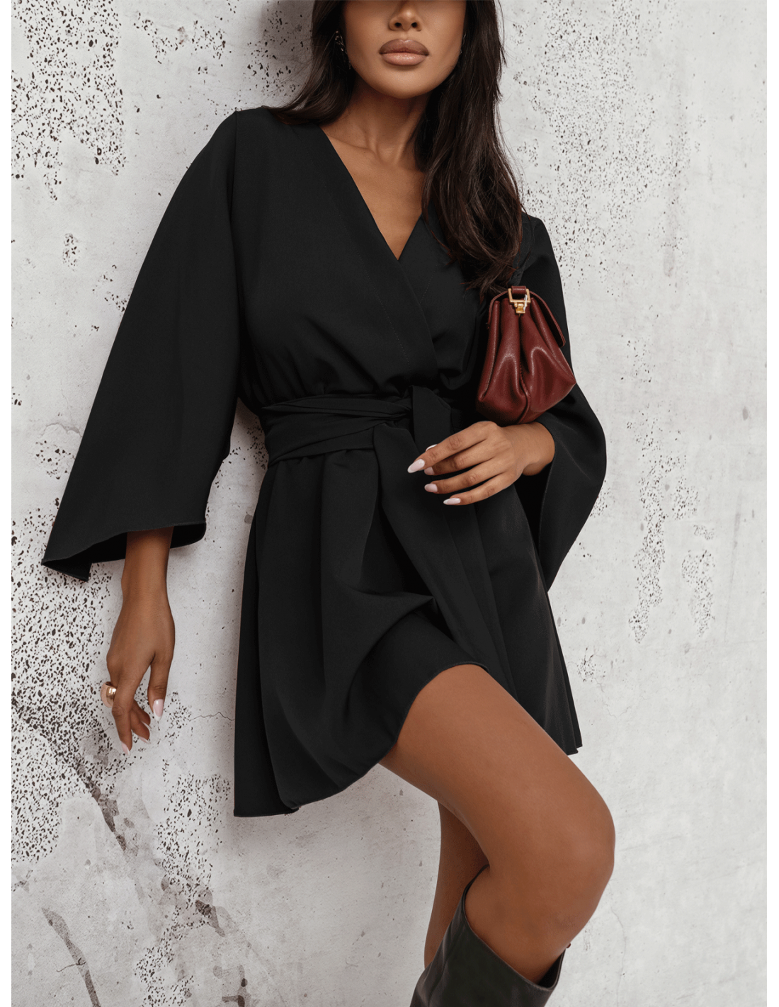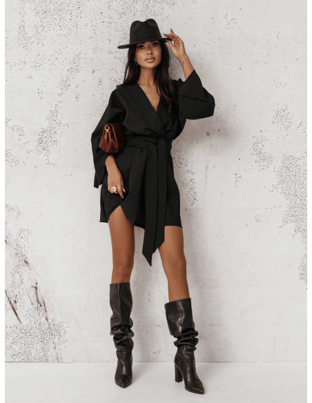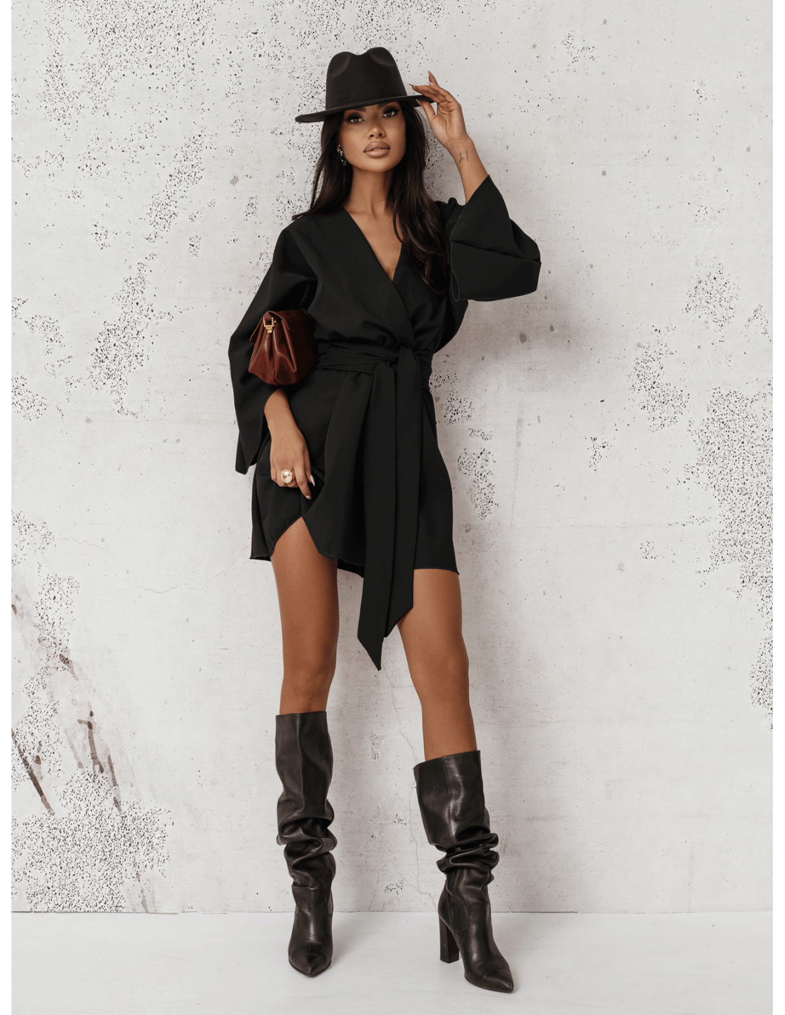 Sukienka mini z przekładanym dekoltem ALIA - czarna