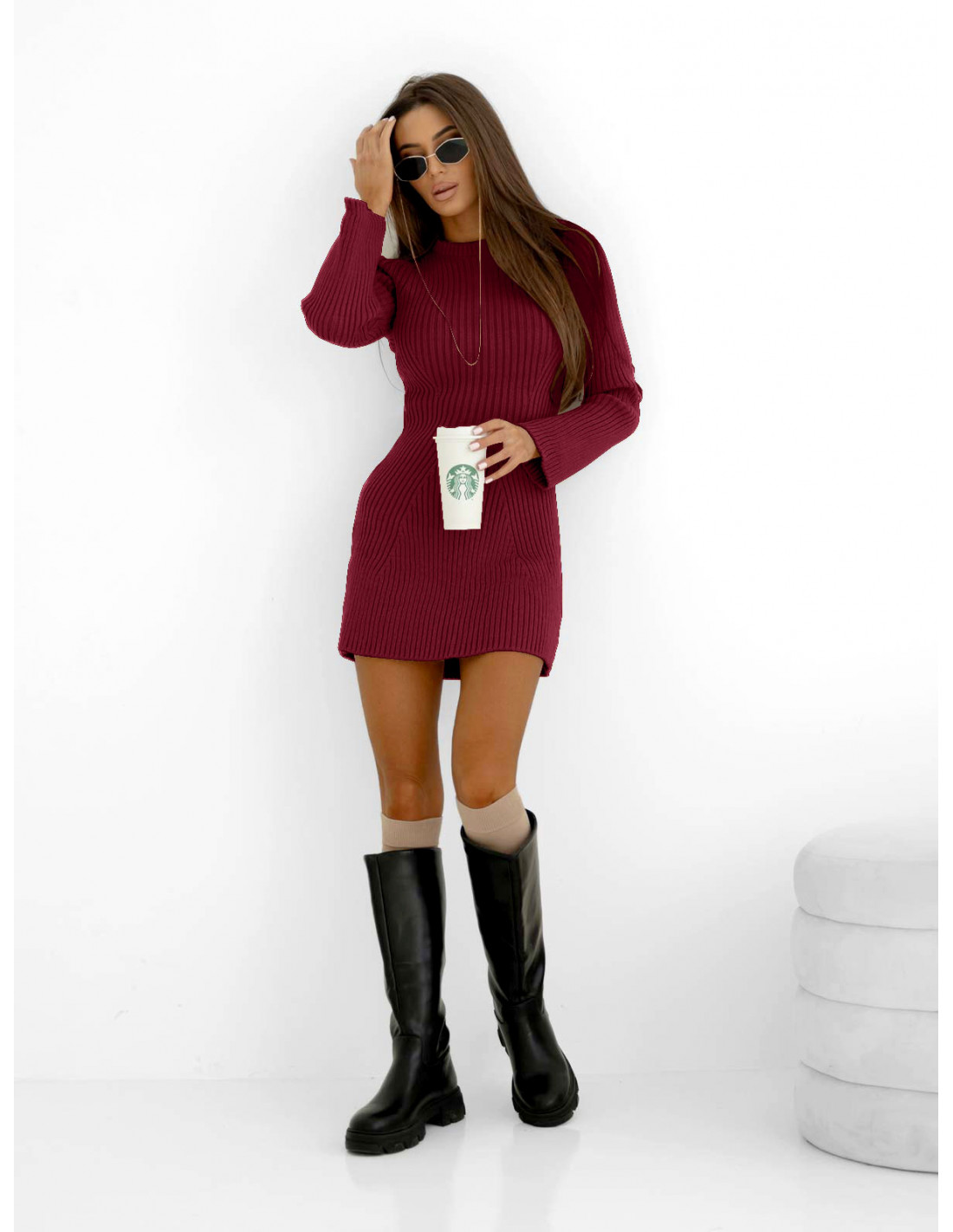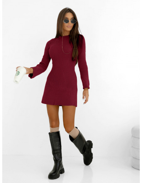 Sweterkowa mini sukienka NOVALIA - bordowa