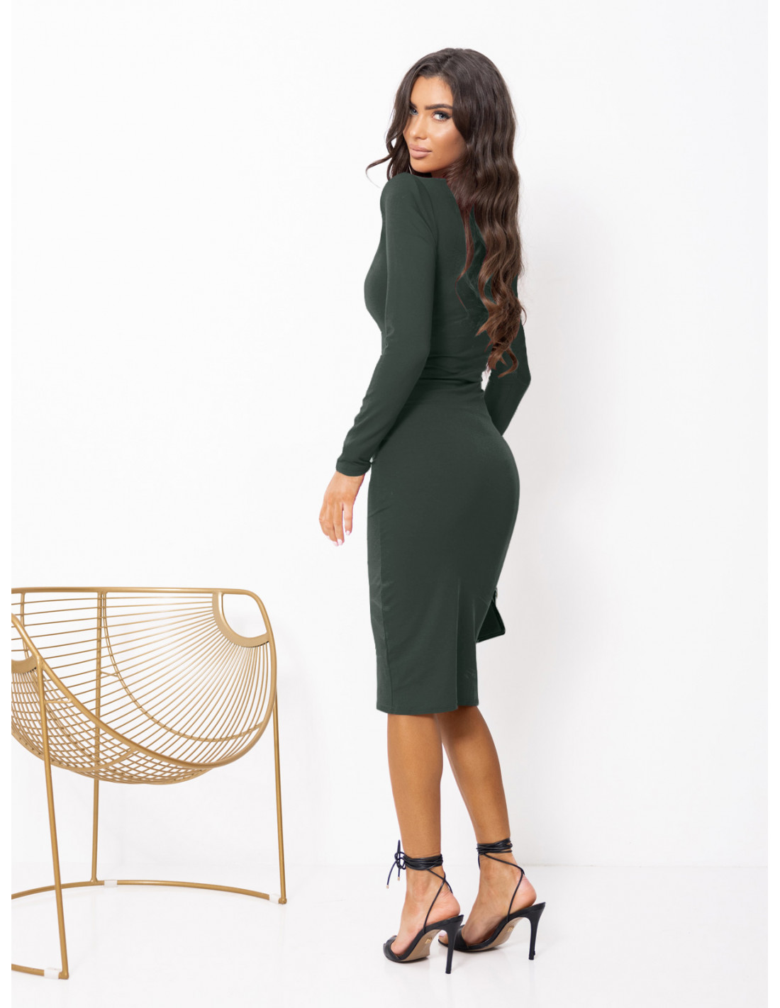 Dopasowana sukienka midi z wiskozy AFFI - khaki