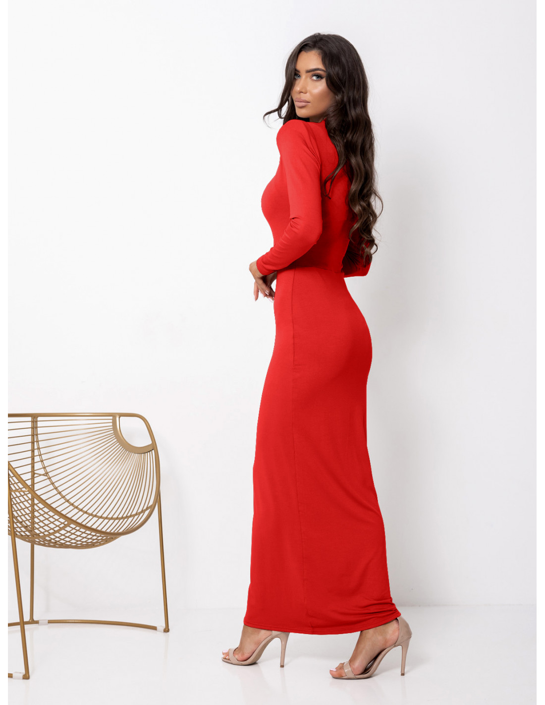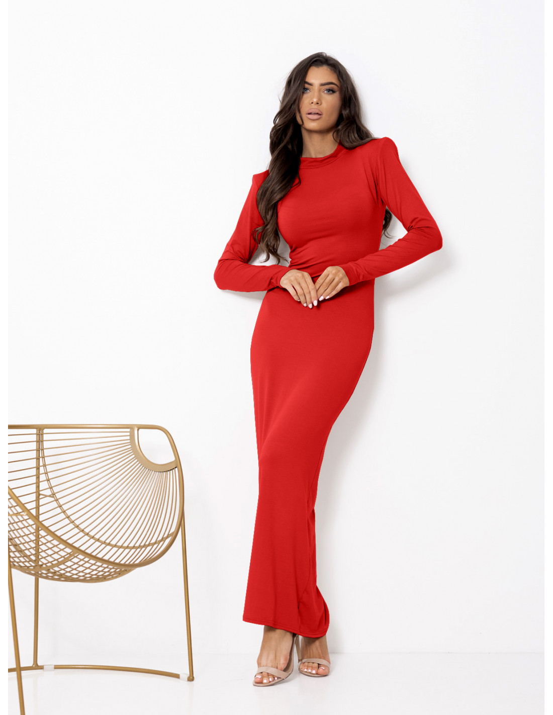 Dopasowana sukienka maxi z wiskozy TISAJA - czerwona