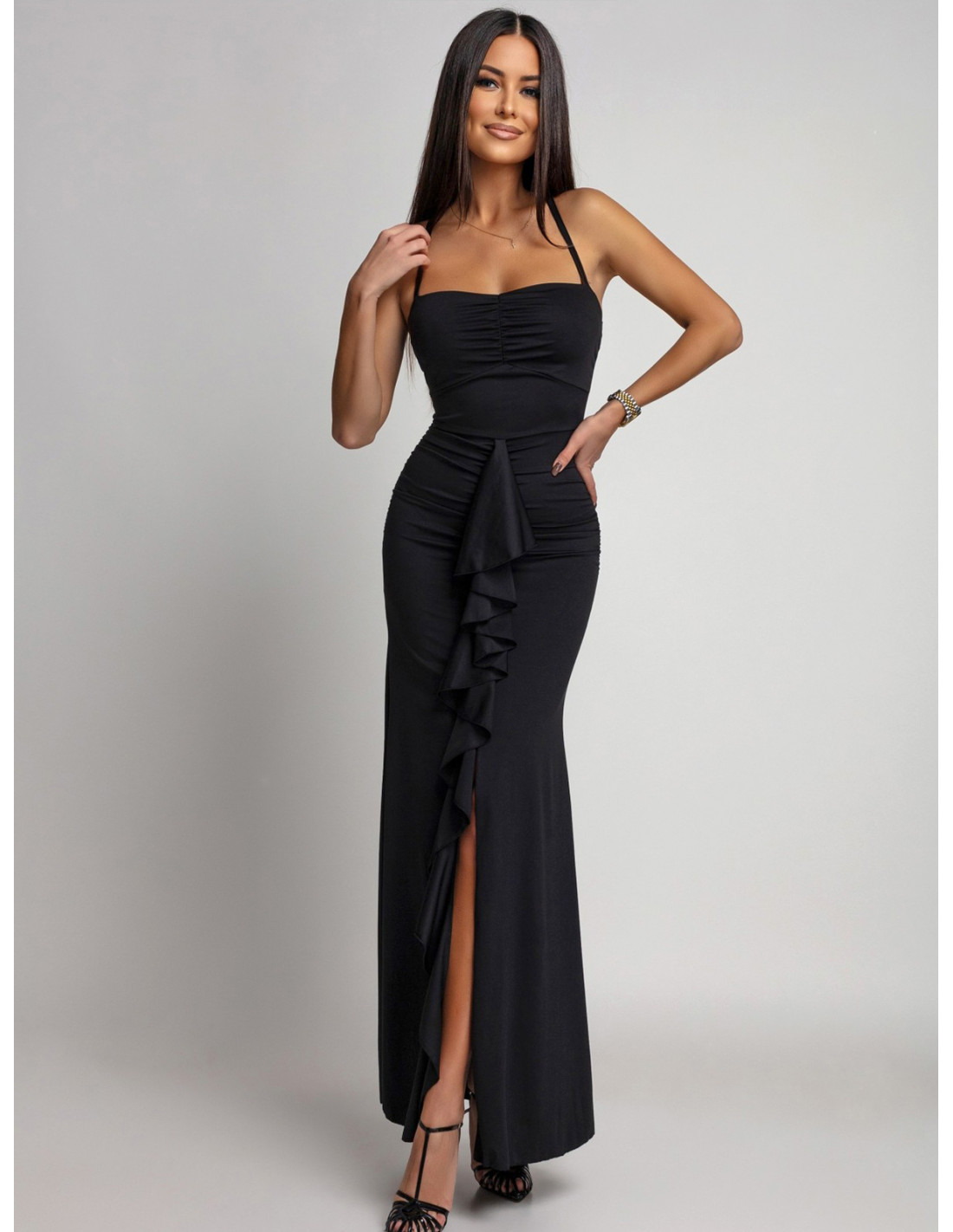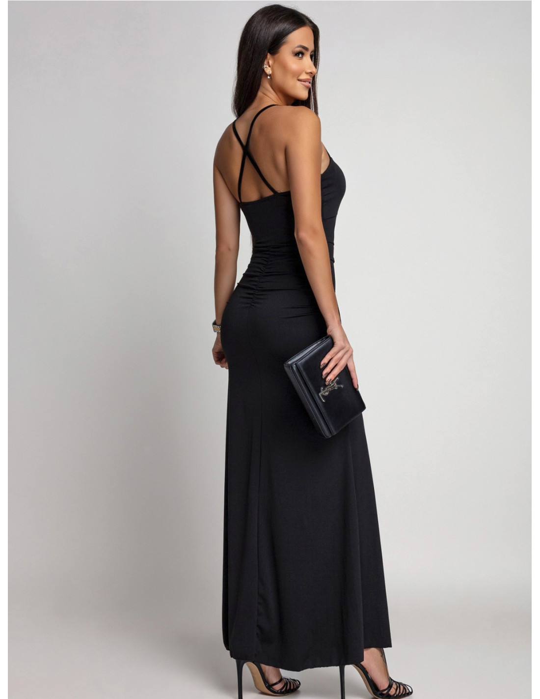 Dopasowana maxi sukienka na ramiączkach KORTA - czarna