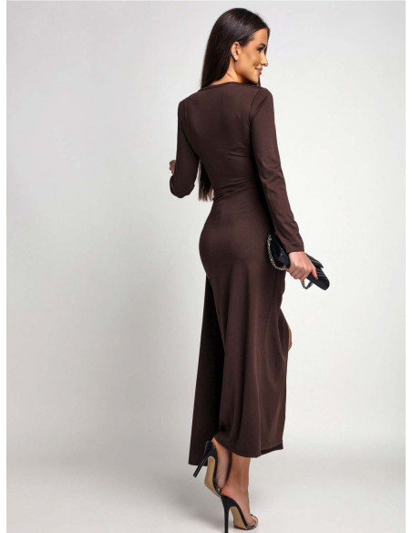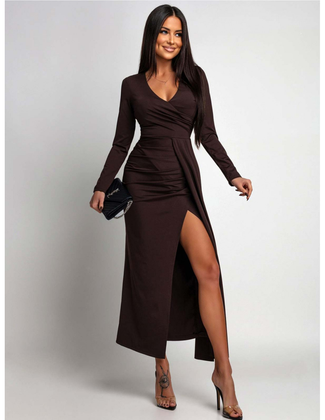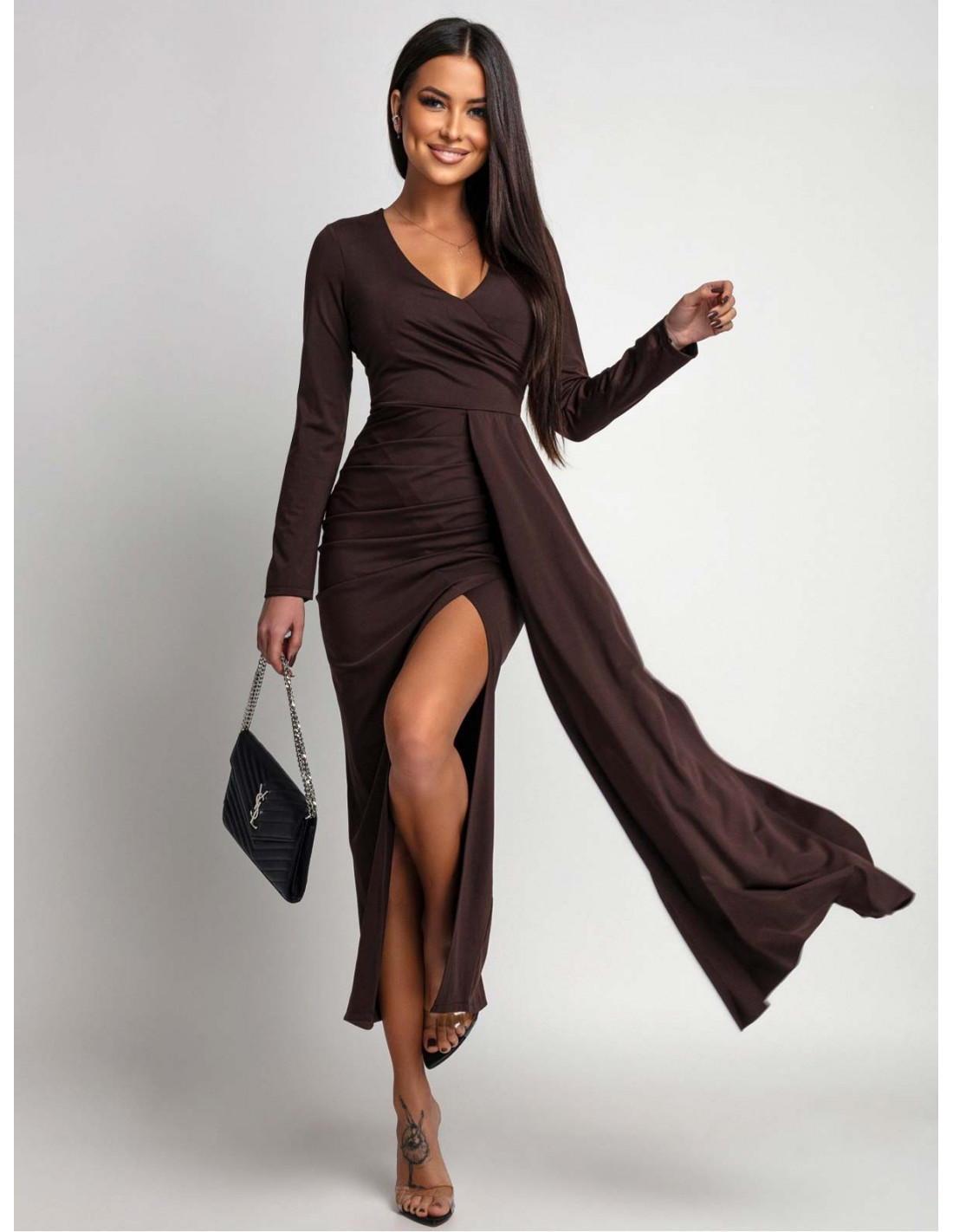 Ta czekoladowa sukienka maxi to połączenie klasy, kobiecości i zmysłowego wdzięku.
