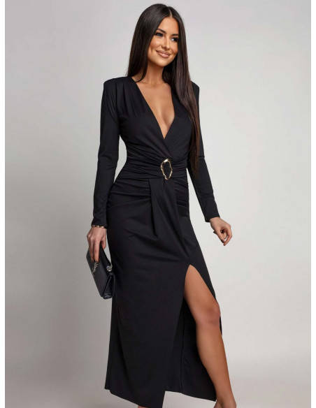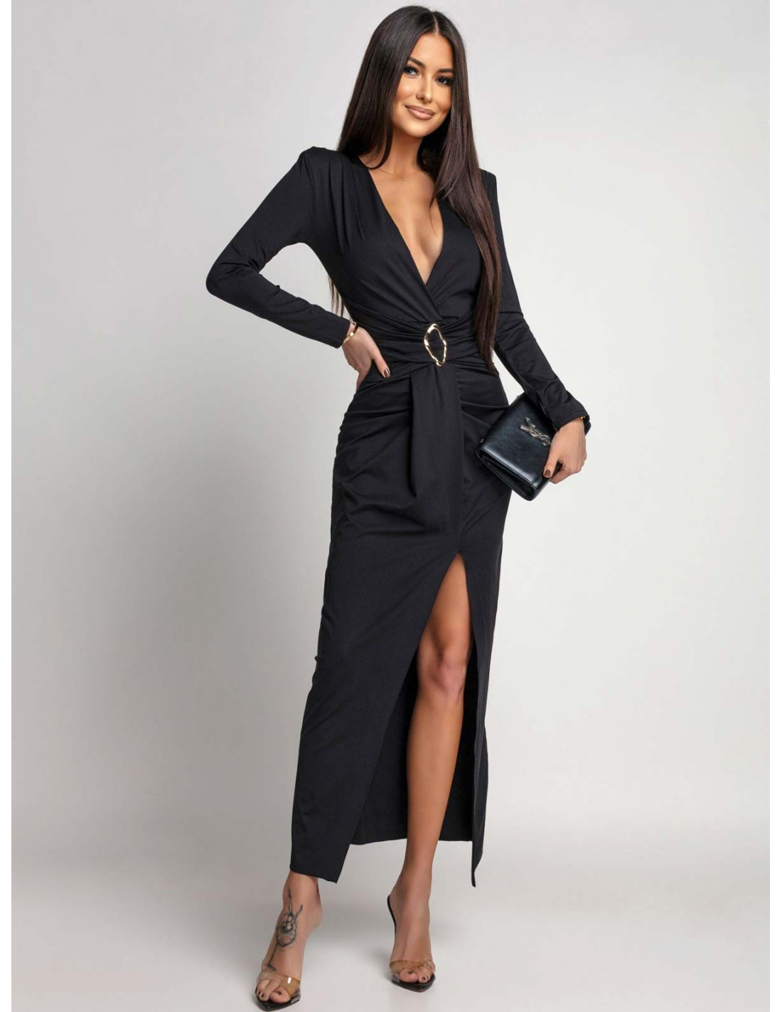 Maxi sukienka z głębokim dekoltem MILLA - czarna