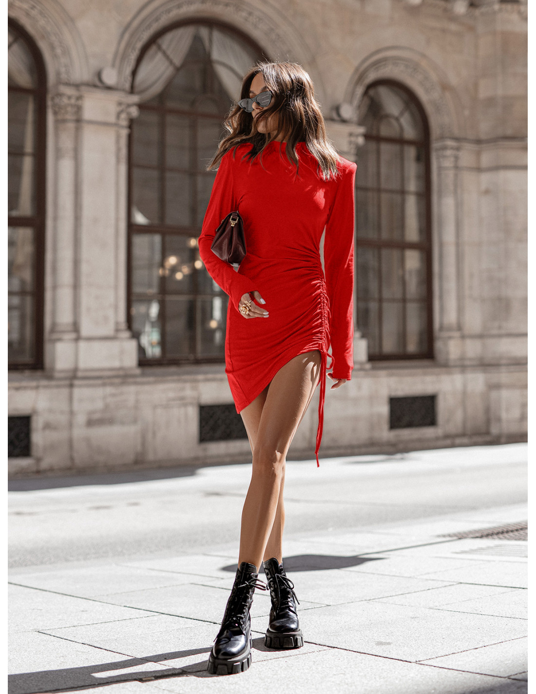 Wiskozowa sukienka mini z marszczeniem RAFINA - czerwona