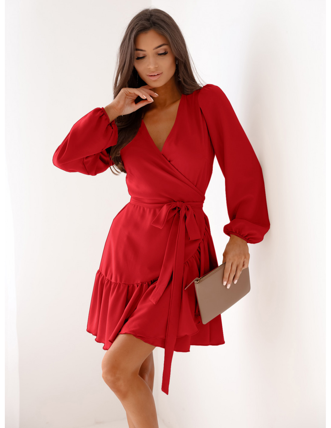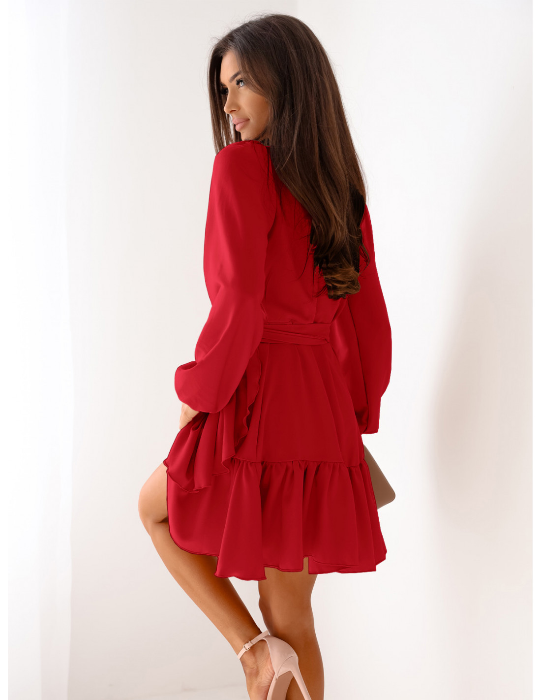 Przekładana sukienka z falbaną LURETTE - czerwona