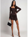Ta czekoladowa sukienka mini to idealne połączenie klasyki i nowoczesnego, kobiecego stylu.