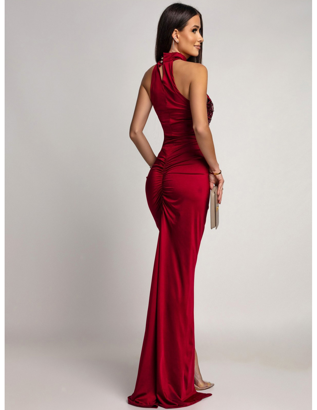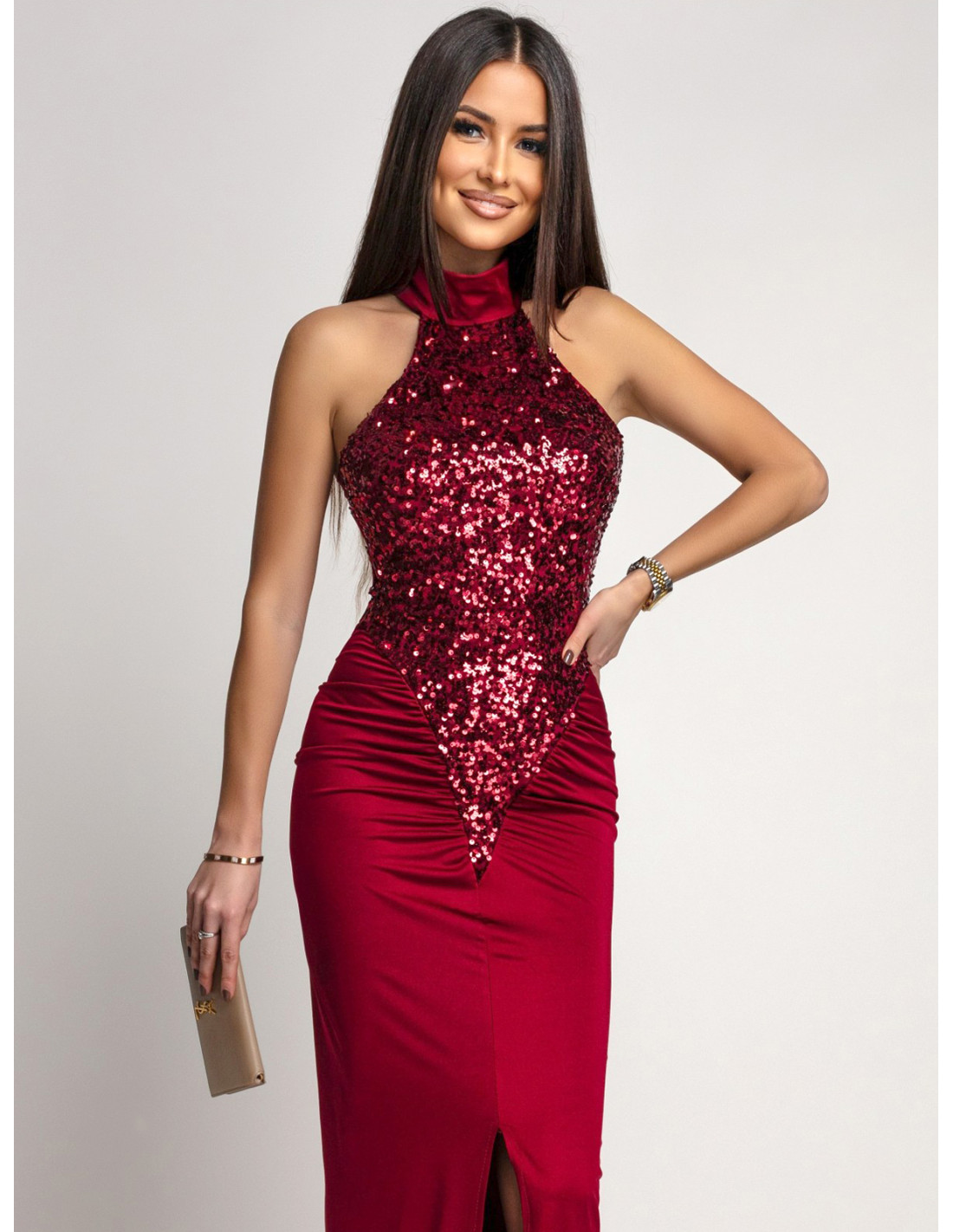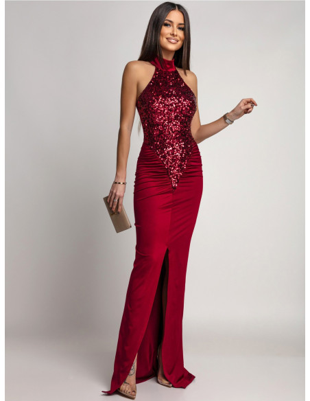 Maxi sukienka z cekinami MALLUNA - bordowa