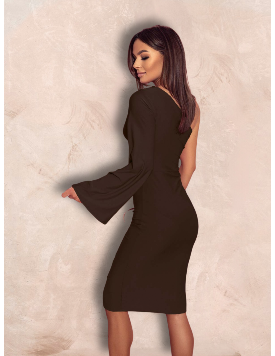 Dopasowana sukienka na jedno ramię EZALI - czekoladowa