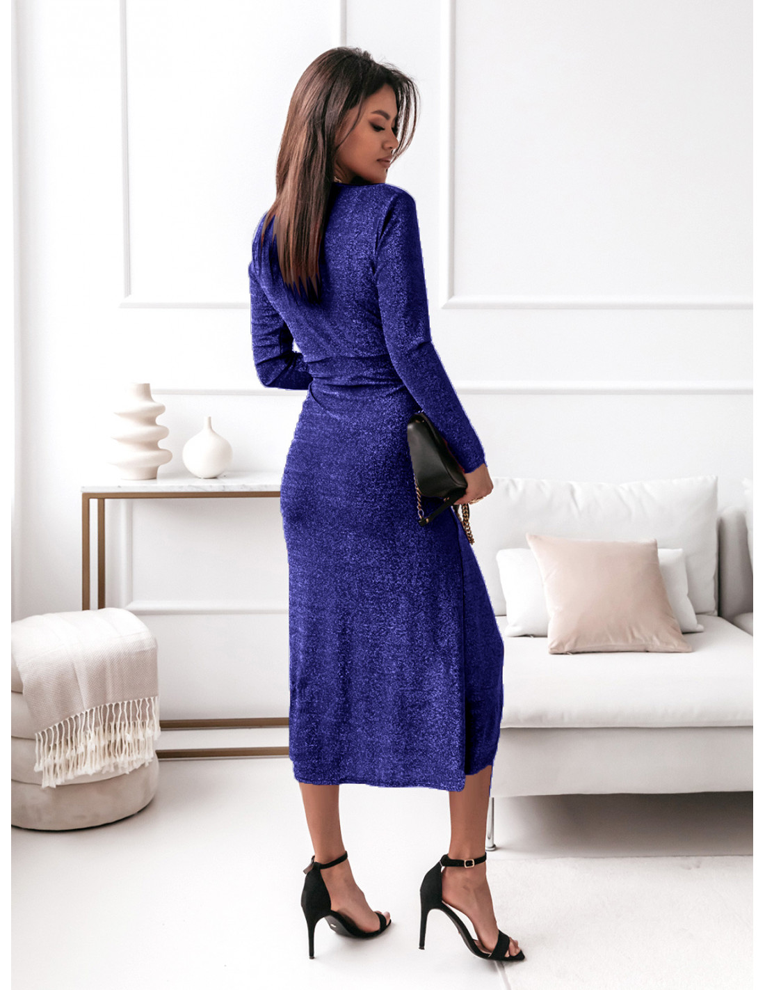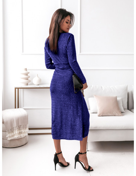 Błyszcząca suknia z długim rękawem MILI - chabrowa