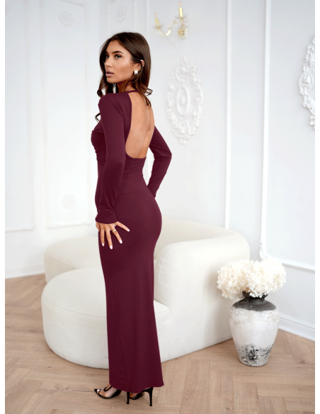 Maxi sukienka z odkrytymi plecami LORETA - bordowa