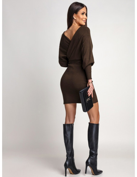 Wiskozowa sukienka z przekładaną górą ESMA - czekoladowa