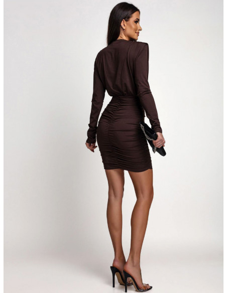 Sukienka mini z marszczeniem SHONA - czekoladowa