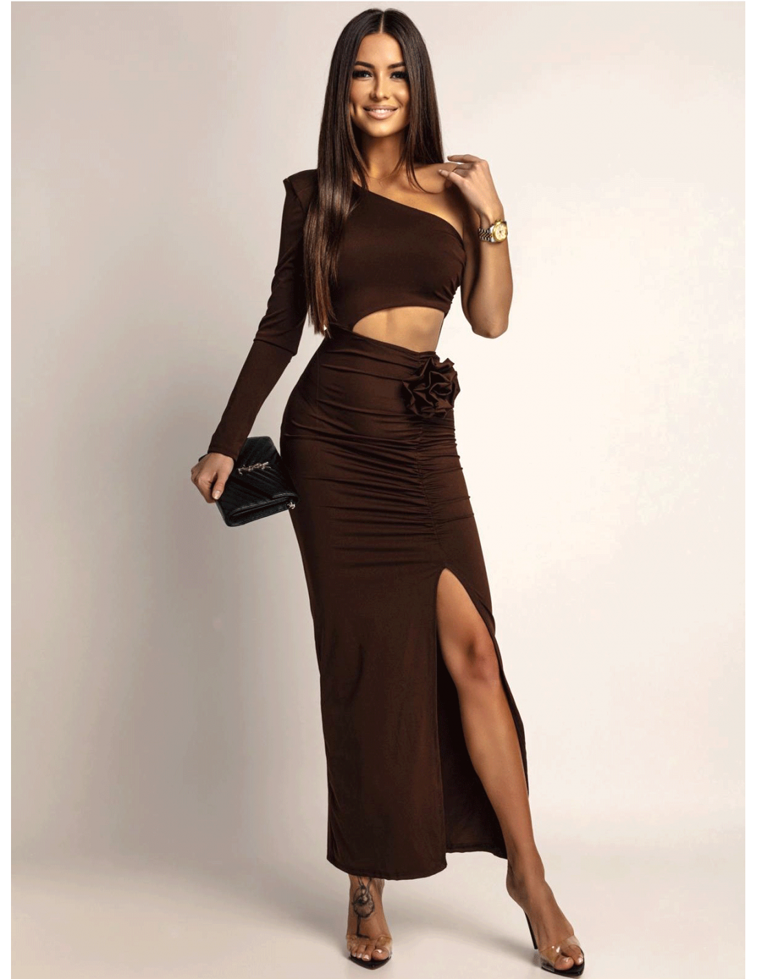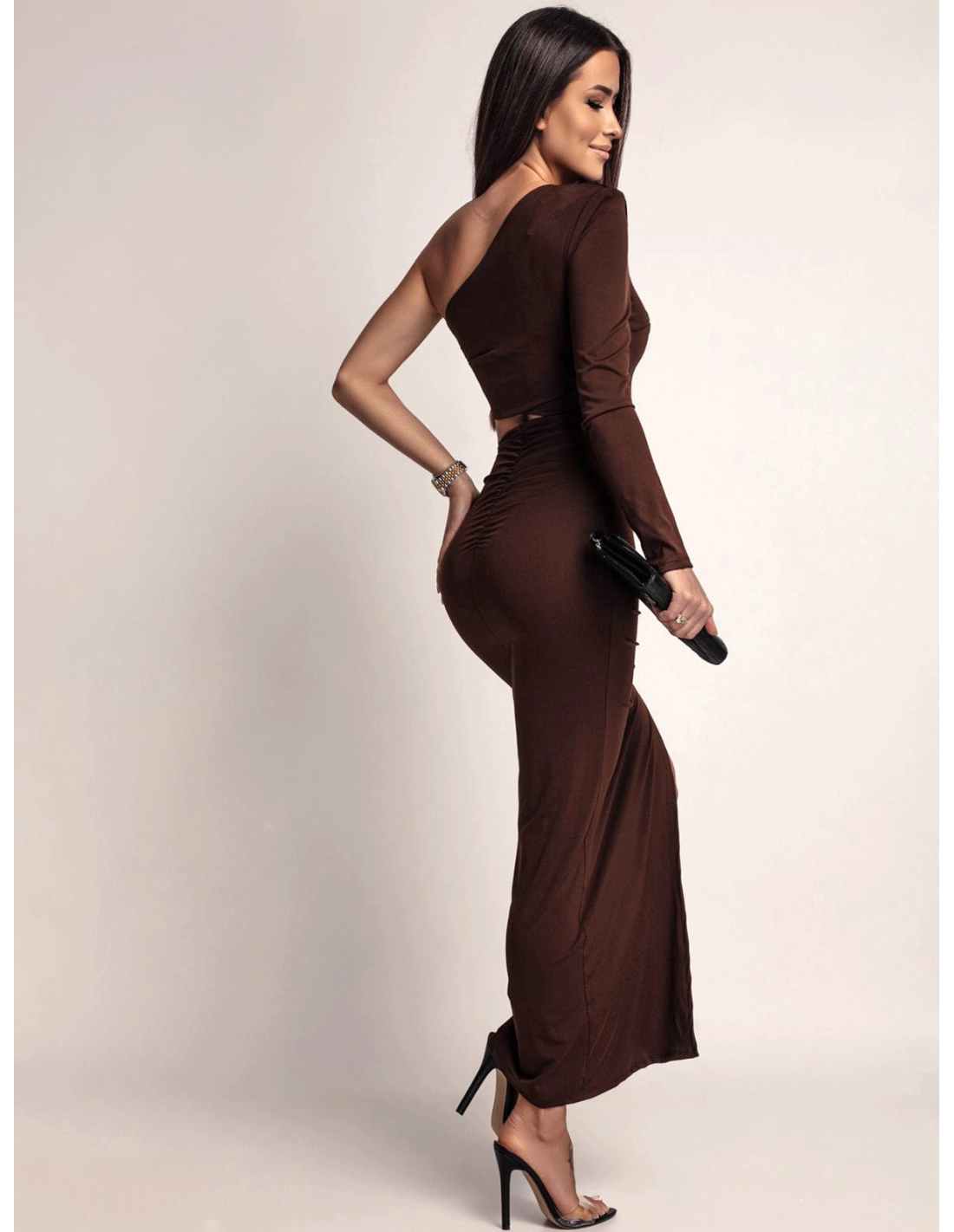 Sukienka maxi na jedno ramię AVELLISA - czekoladowa