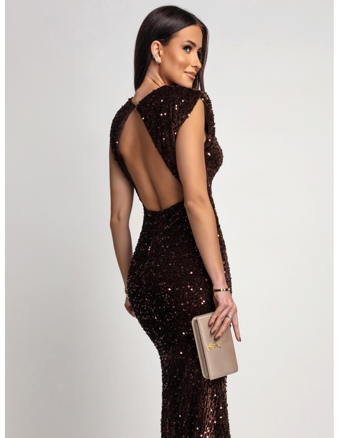 Cekinowa sukienka z odkrytymi plecami FULDA - czekoladowa