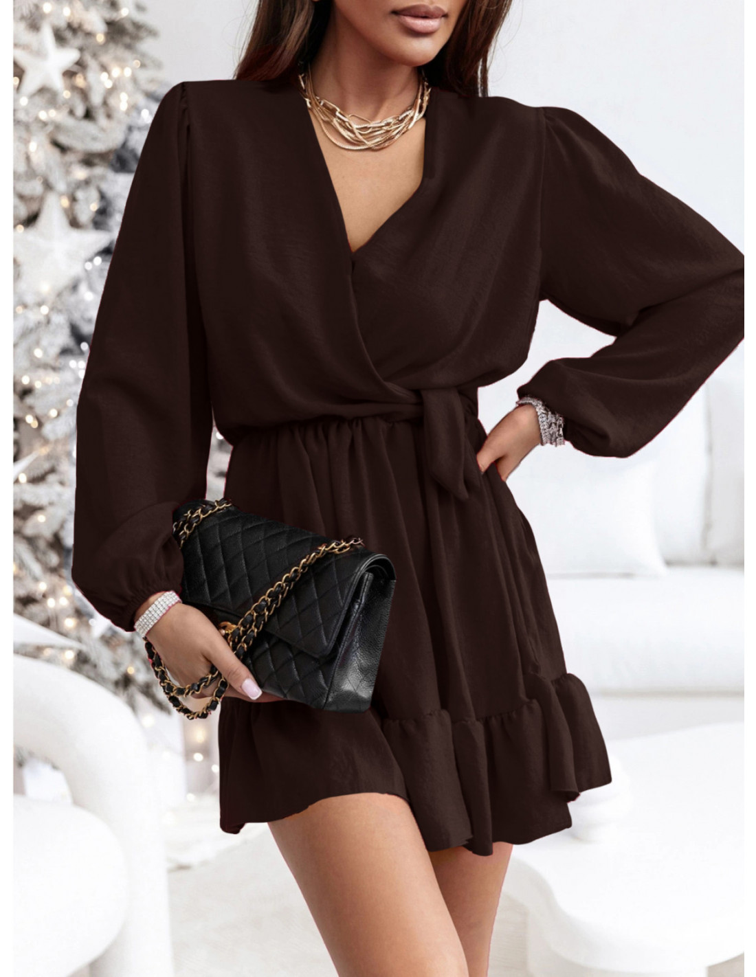 Rozkloszowana sukienka w kolorze czekoladowym to sukienka ,która nie potrzebuje wiele by zachwycać.