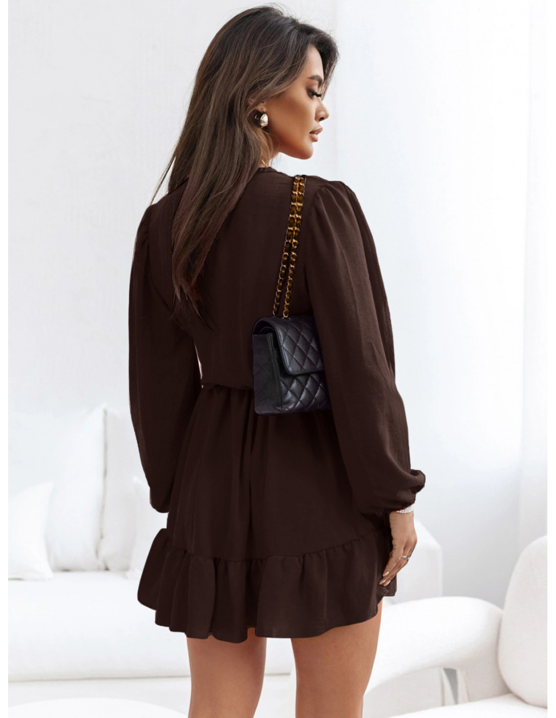 Rozkloszowana sukienka z falbanką - KALIFORNIA - czekoladowa