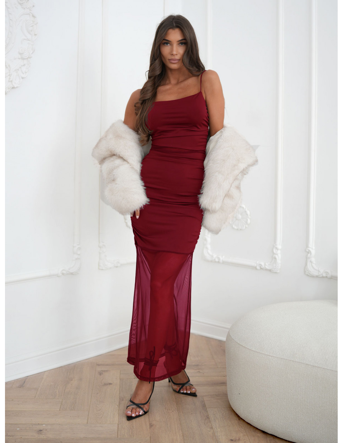 Dopasowana maxi sukienka na ramiączkach CLOELIA - bordowa