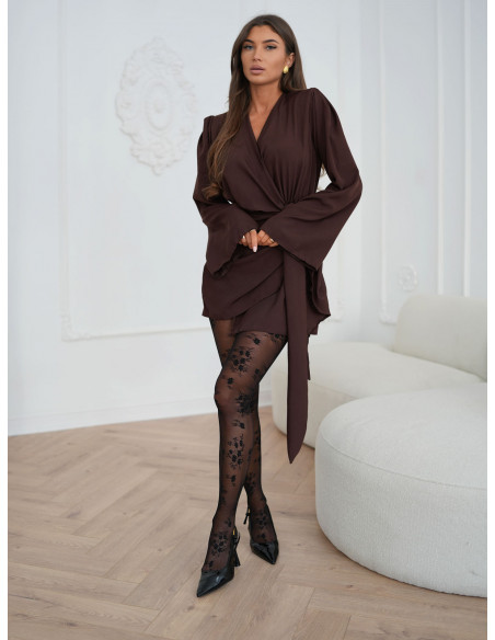 Przekładana sukienka z szerokimi rękawami MELORA - czekoladowa