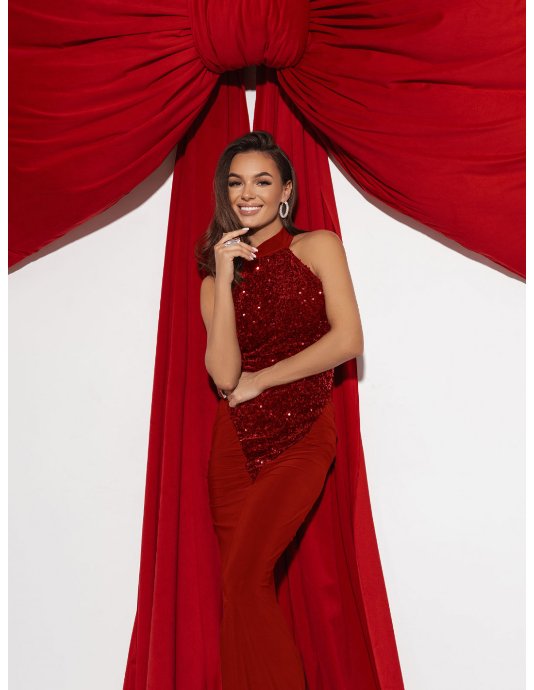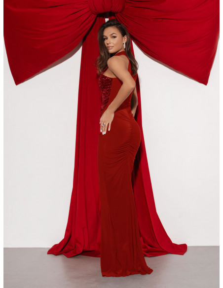 W maxi sukience z cekinami w kolorze czerwonym będziesz jak gwiazda na czerwonym dywanie.