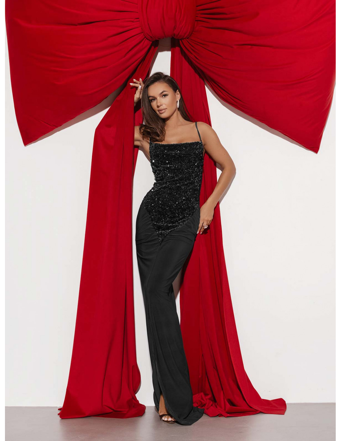 Sukienka maxi z cekinową górą to prawdziwa perełka wśród wieczorowych propozycji — pełna blasku, elegancji i zmysłowego charakteru.