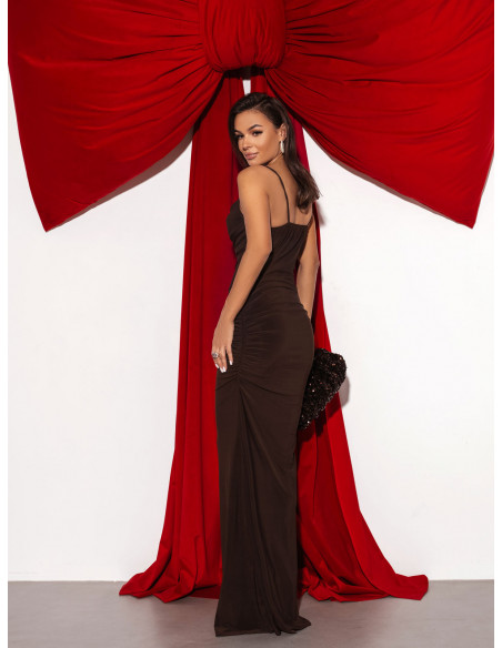 Sukienka maxi w kolorze czekoladowym podkreśli Twoją urodę.