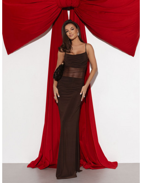 Sukienka maxi z tiulową wstawką LARISE - czekoladowa