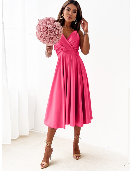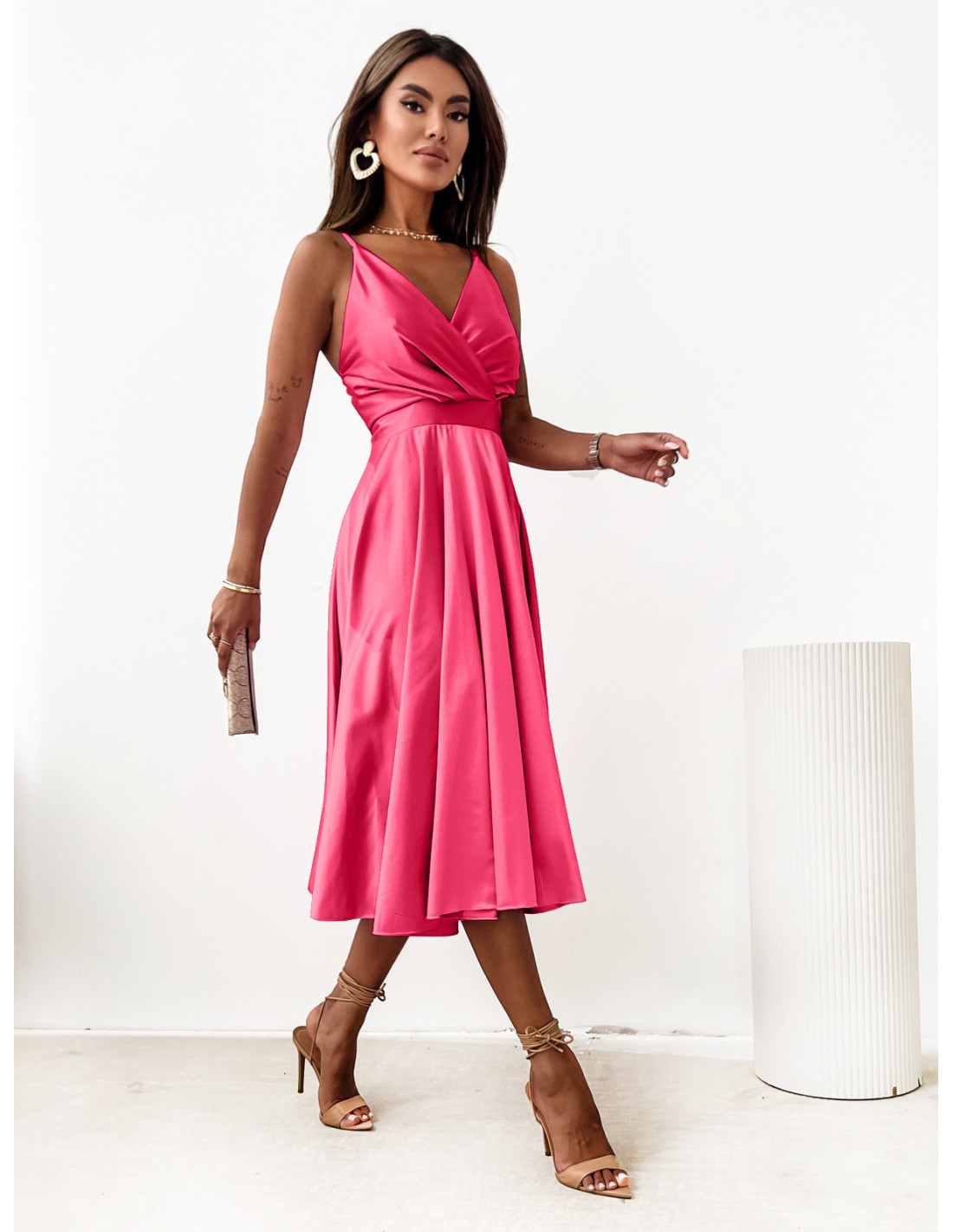 Rozkloszowana sukienka na ramiączkach CRISSY - fuksjowa