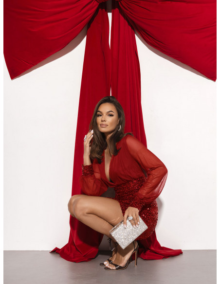 Cekinowa sukienka mini z tiulem CALINA - czerwona
