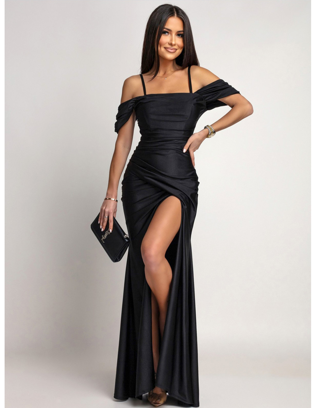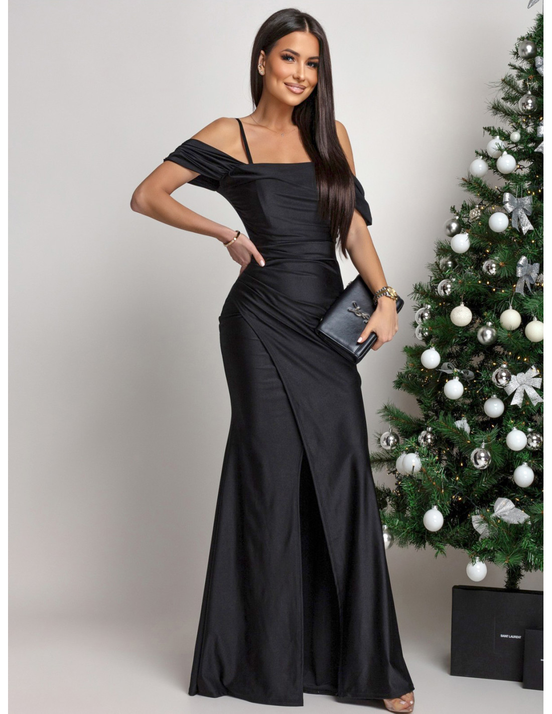 Sukienka maxi z przekładanym dołem VIANNA - czarna