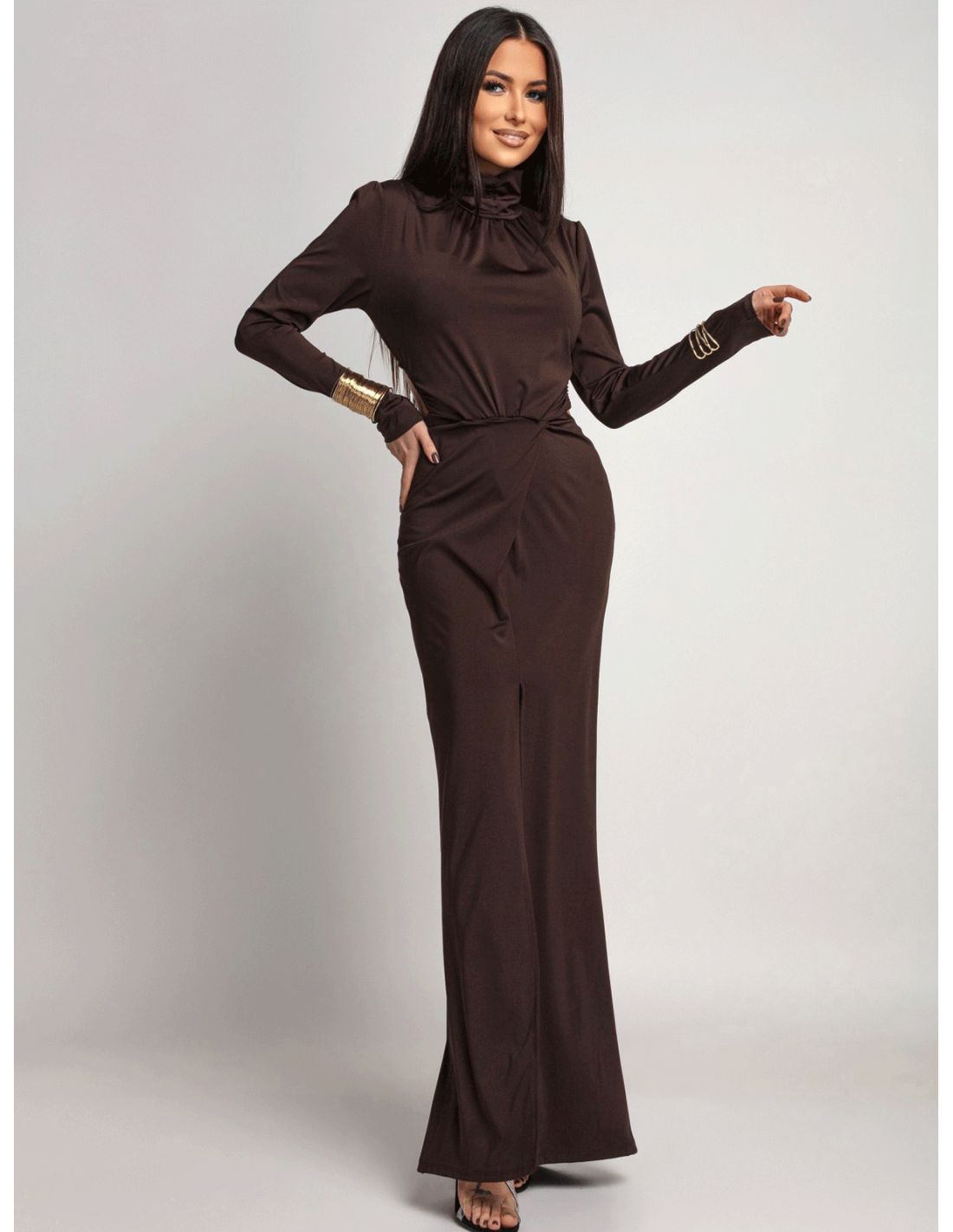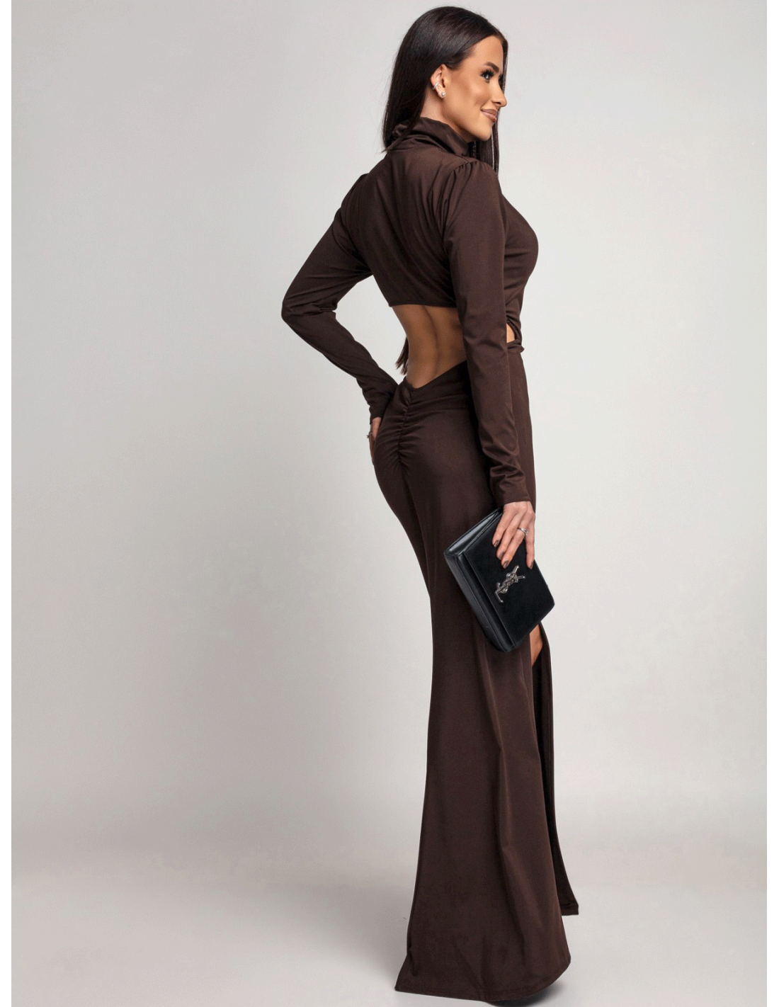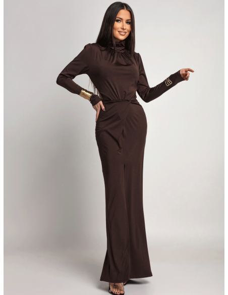 Sukienka maxi z odkrytymi plecami CALTIA - czekoladowa