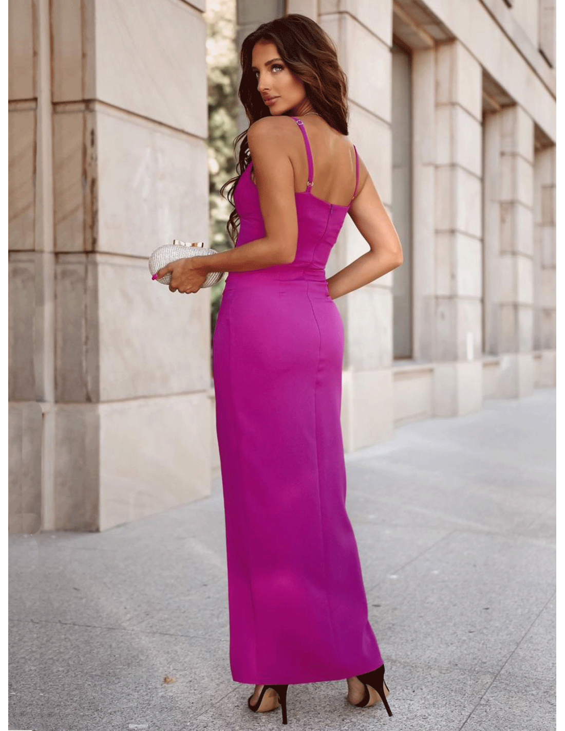 Elegancka sukienka maxi na ramiączkach BASFA - fuksjowa