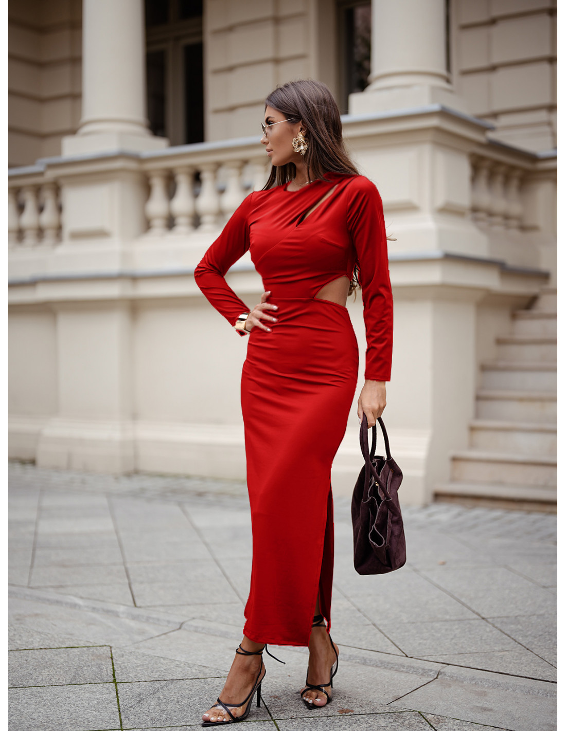Dopasowana maxi sukienka z wycięciami DEVRA - czerwona