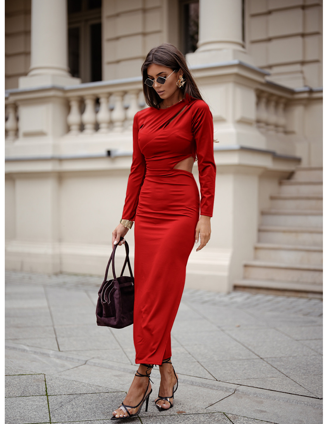 Zjawiskowa maxi sukienka z długim rękawem i efektownymi wycięciami to propozycja dla kobiet, które lubią przyciągać spojrzenia i stawiać na odważną elegancję.