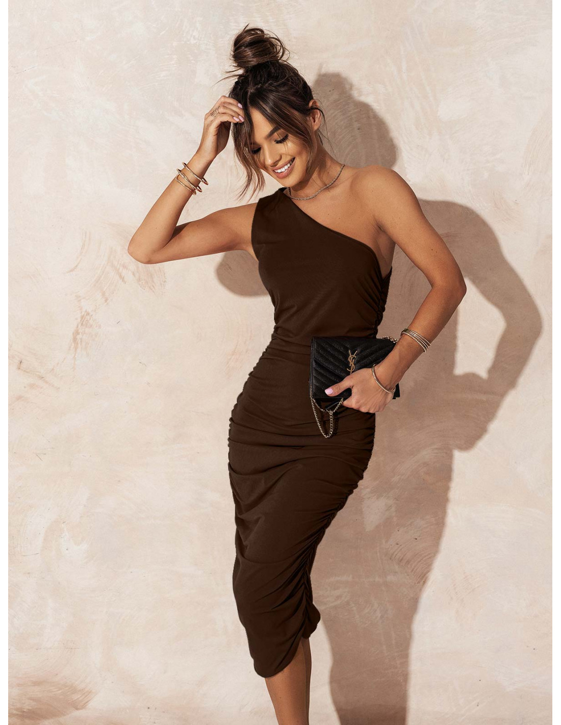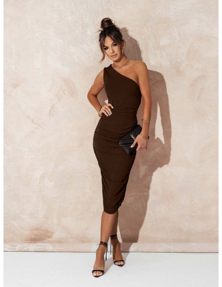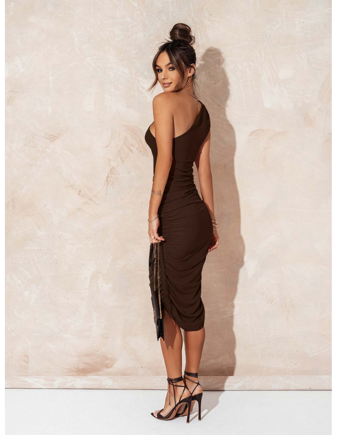 Dopasowana sukienka na jedno ramię DAYA - czekoladowa