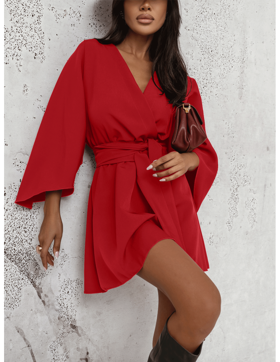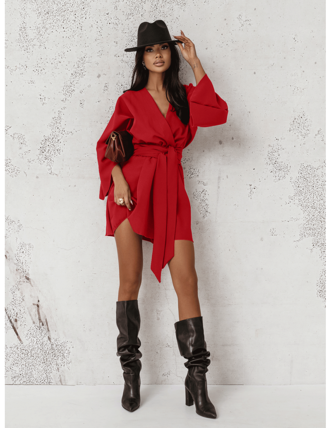 Sukienka mini z przekładanym dekoltem ALIA - czerwona