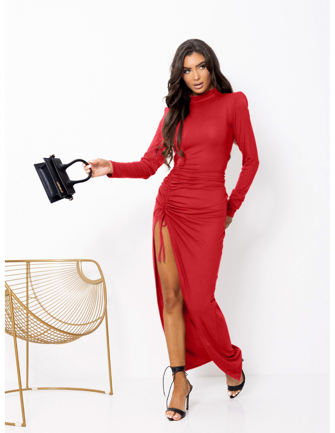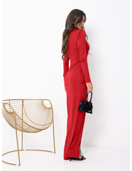 Sukienka maxi z marszczeniem z wiskozy IDRIL - czerwona