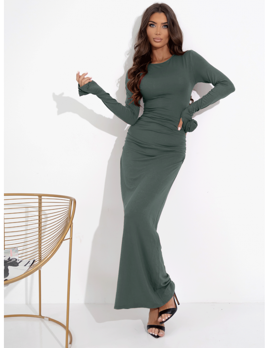 Sukienka maxi z marszczeniami z wiskozy CARYS - khaki