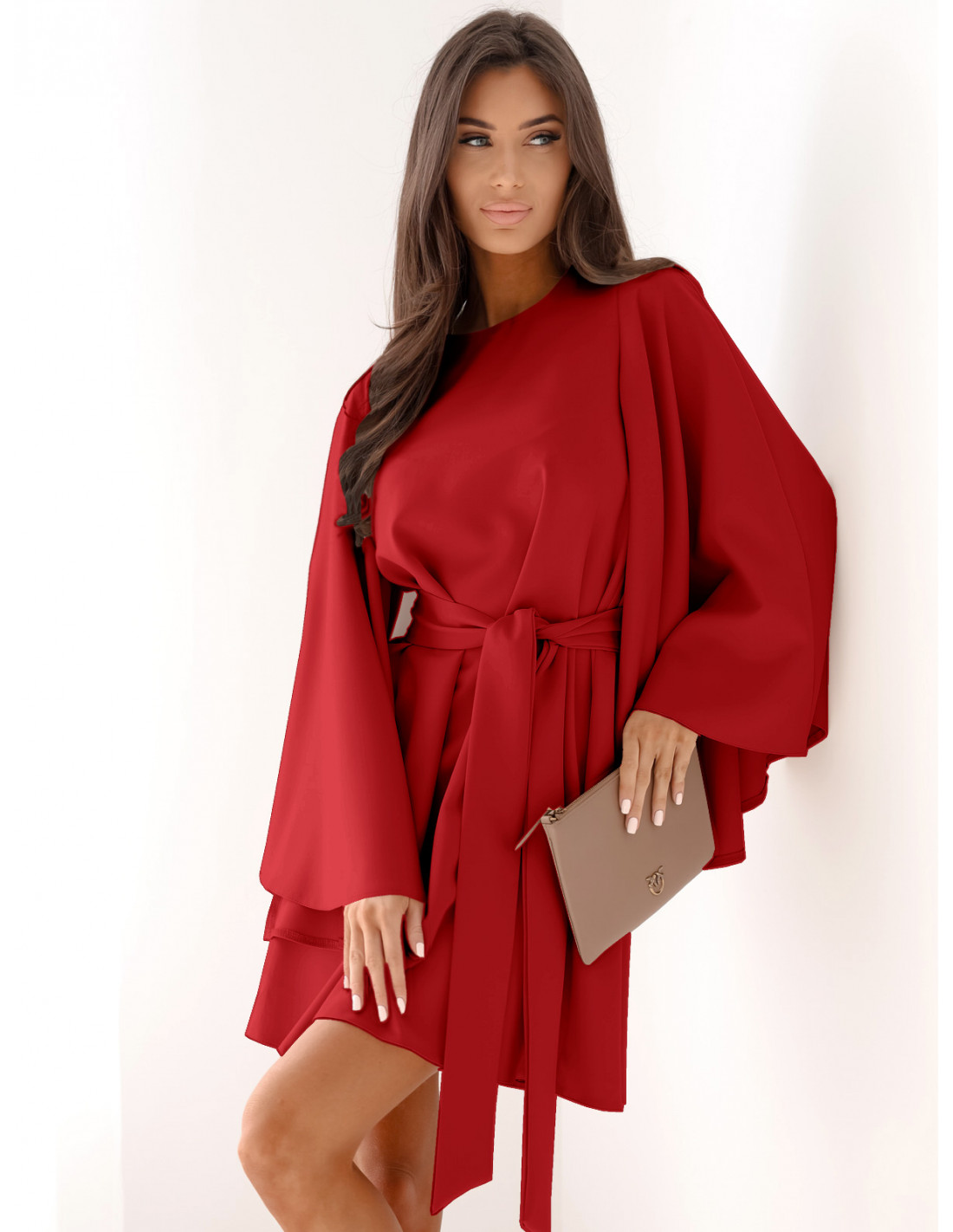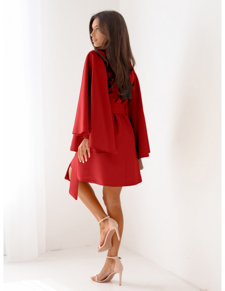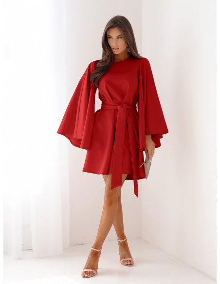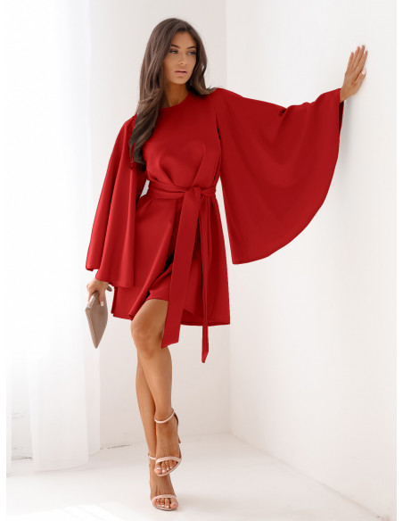 Trapezowa sukienka z szerokimi rękawami ENJA - czerwona