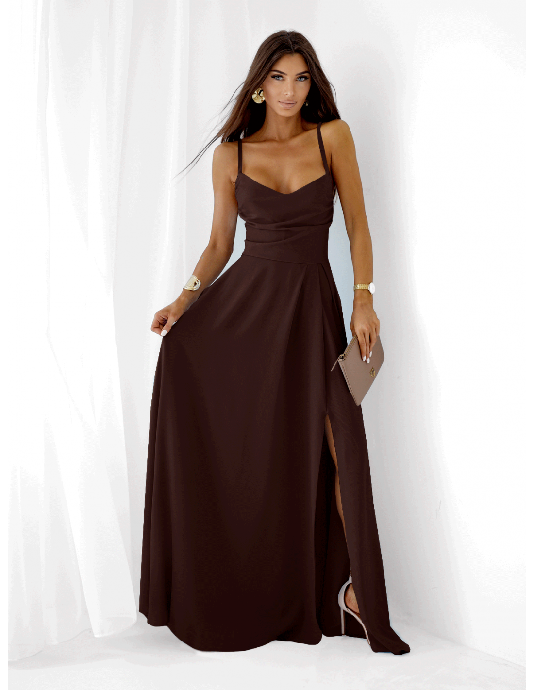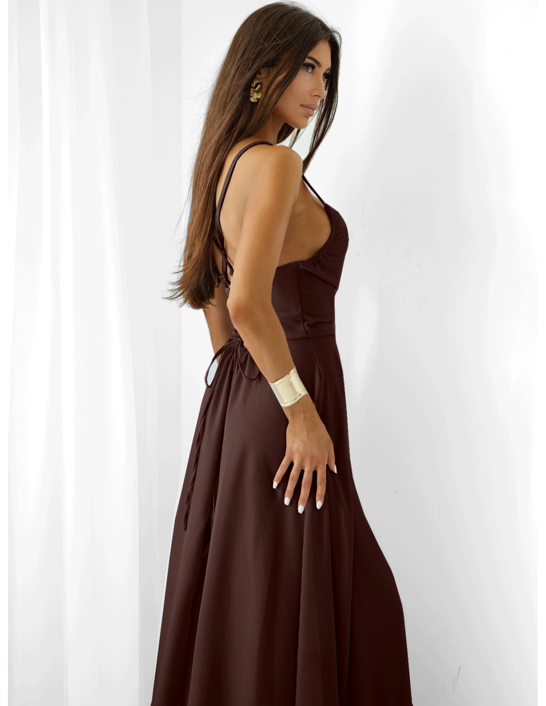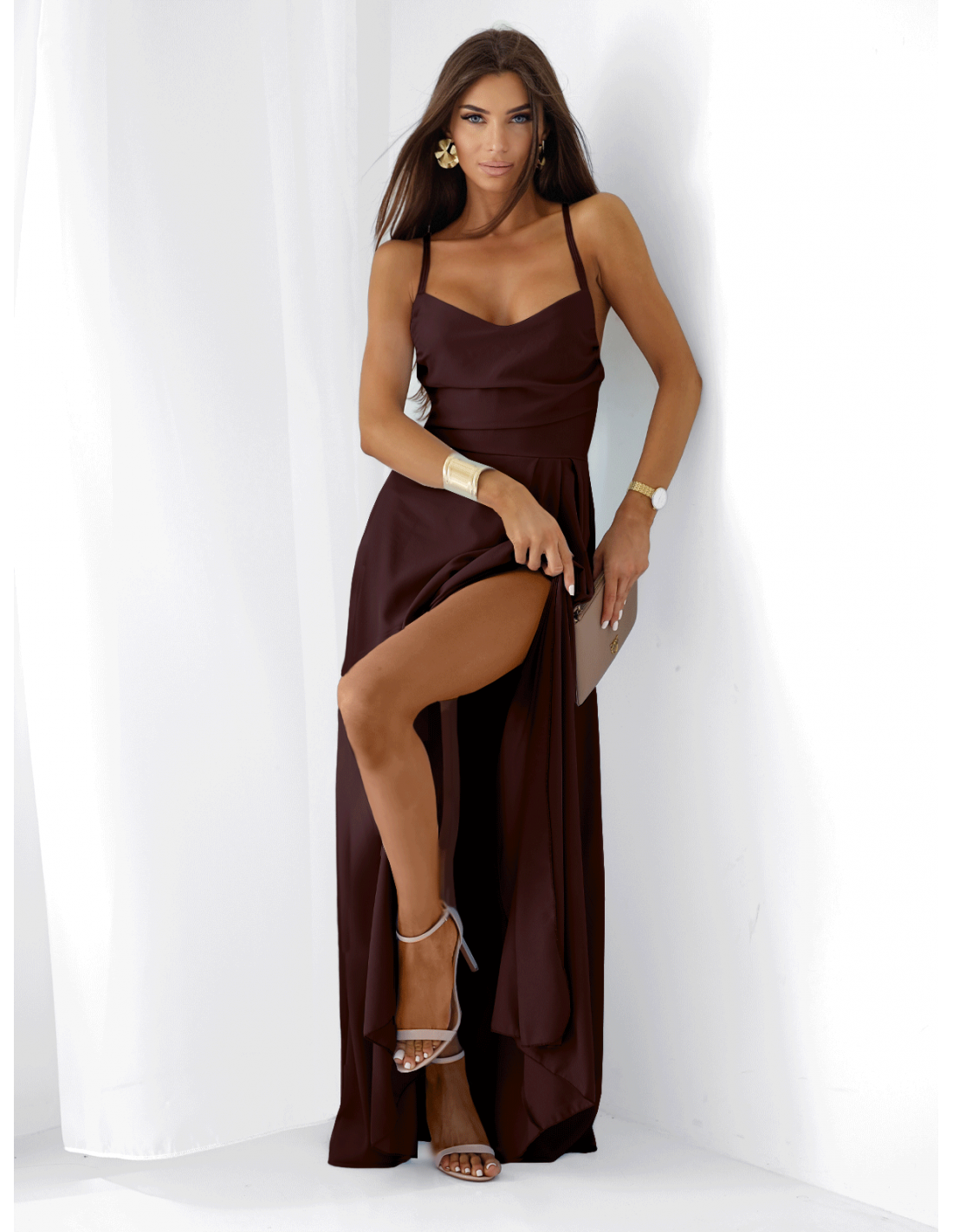 Sukienka maxi na ramiączkach LYANNE - czekoladowa