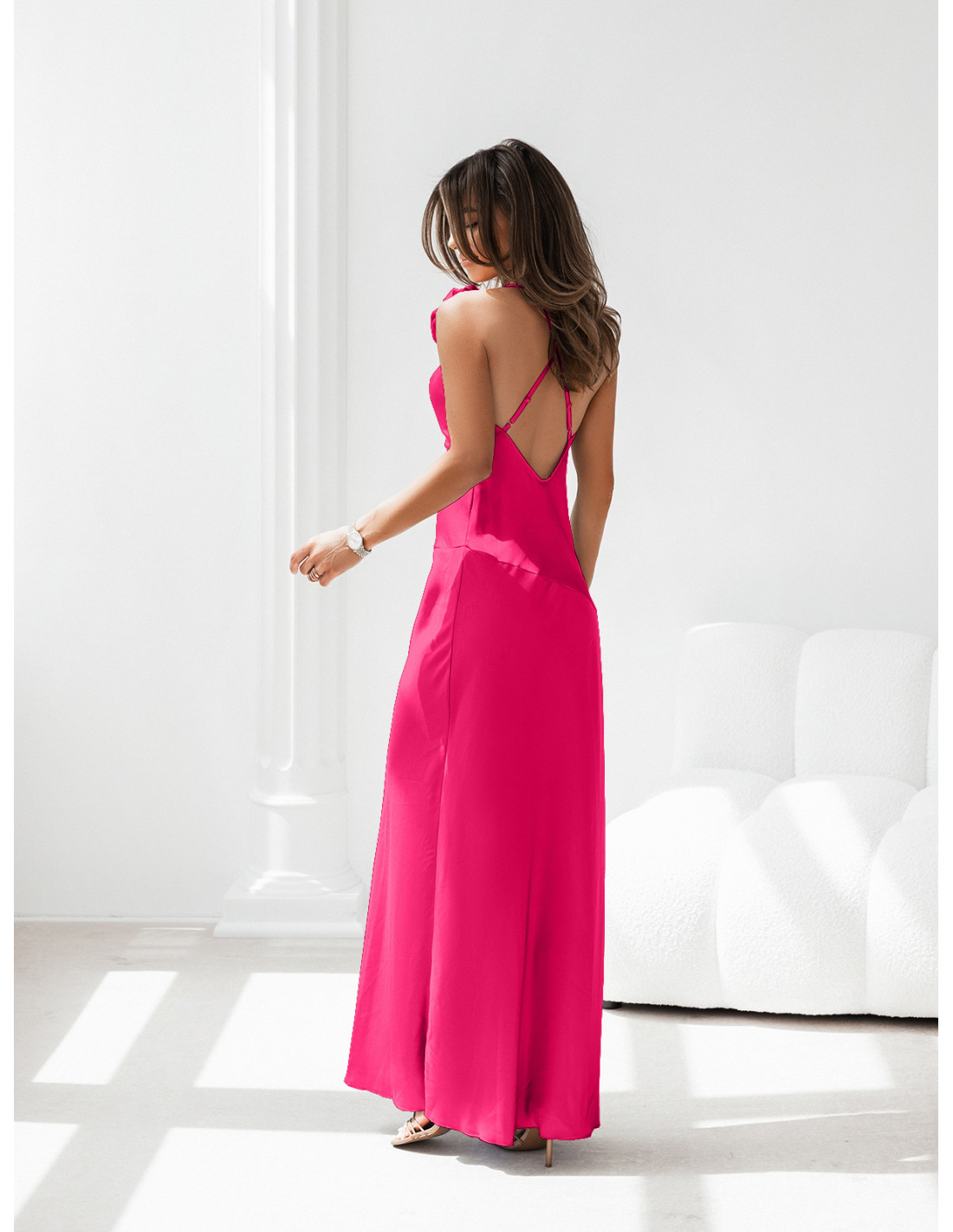 WP Satynowa dopasowana sukienka maxi - fuksjowa