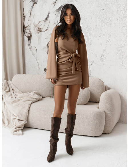 WP masełkowa sukienka mini z wiązaniem - mocha mousse